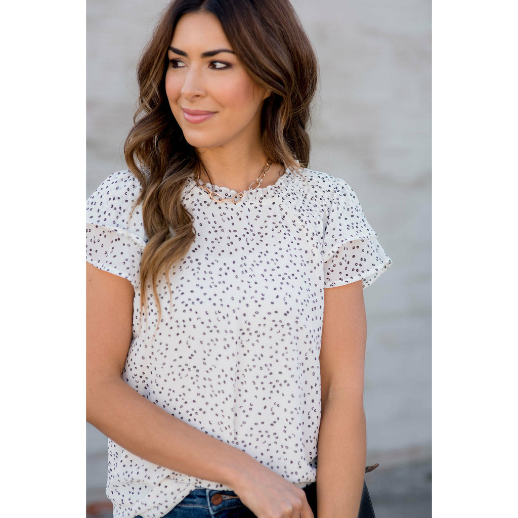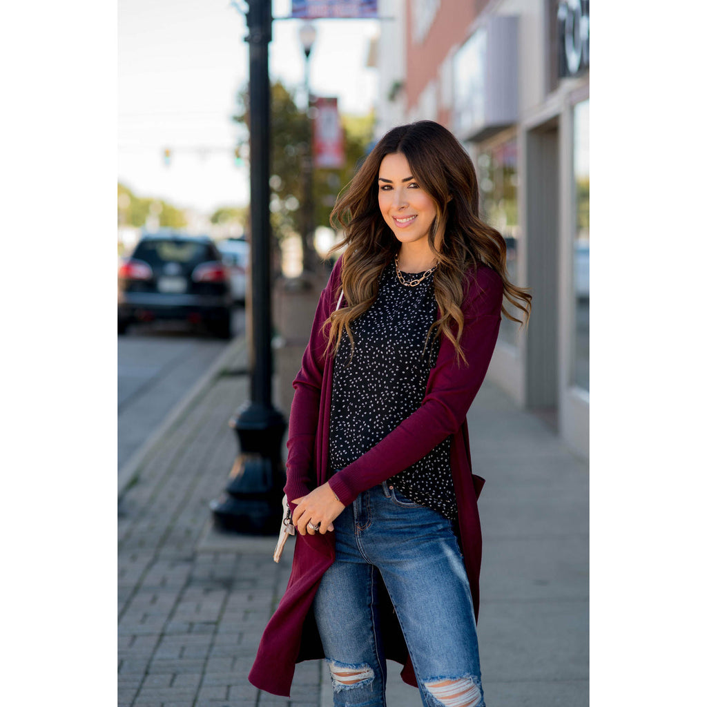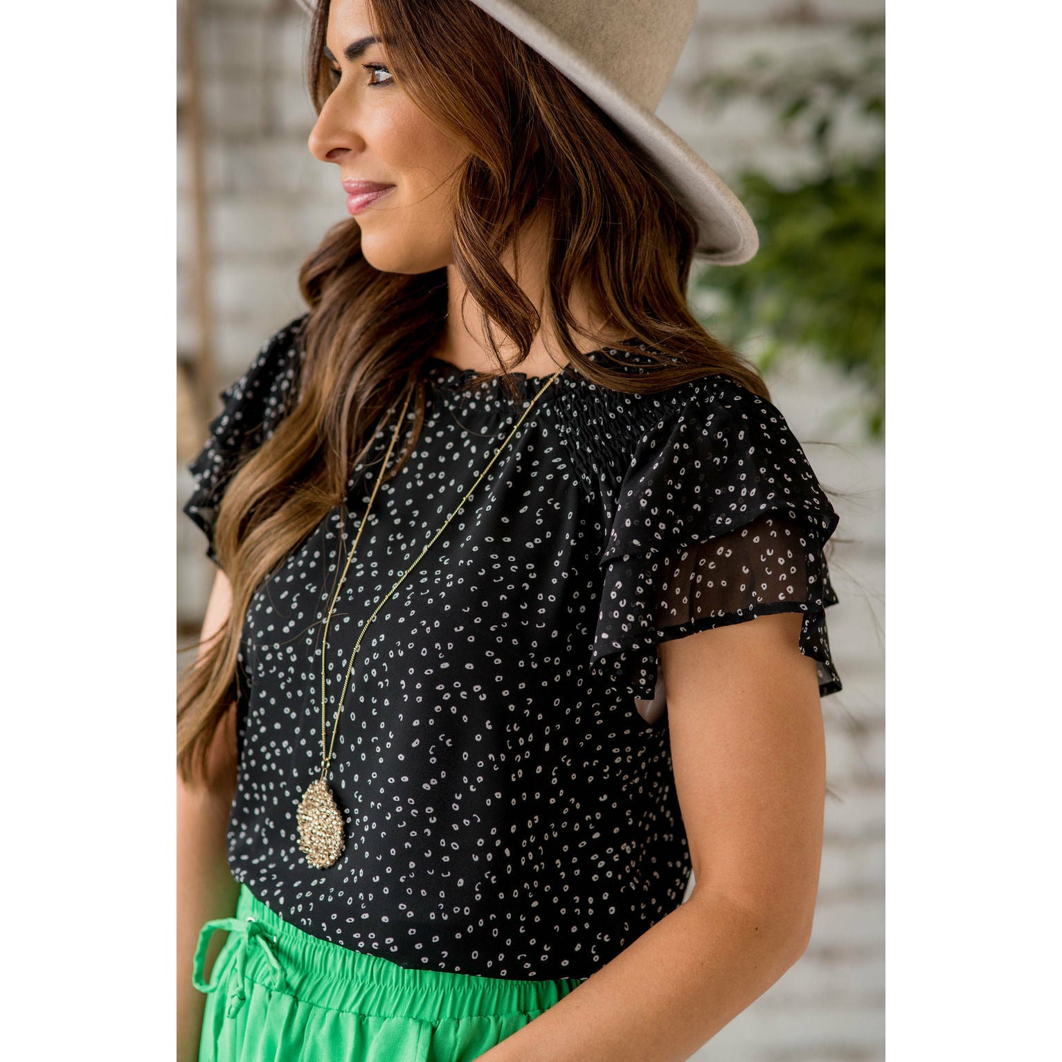 Are you looking for a cute blouse that is a bit different? Look no further! This semi circle blouse has flare sleeves, and can be dressed up or worn casual! Don't forget to wear a cardigan over it for that extra layer if you need it! It pairs well with jeans or jeggings!