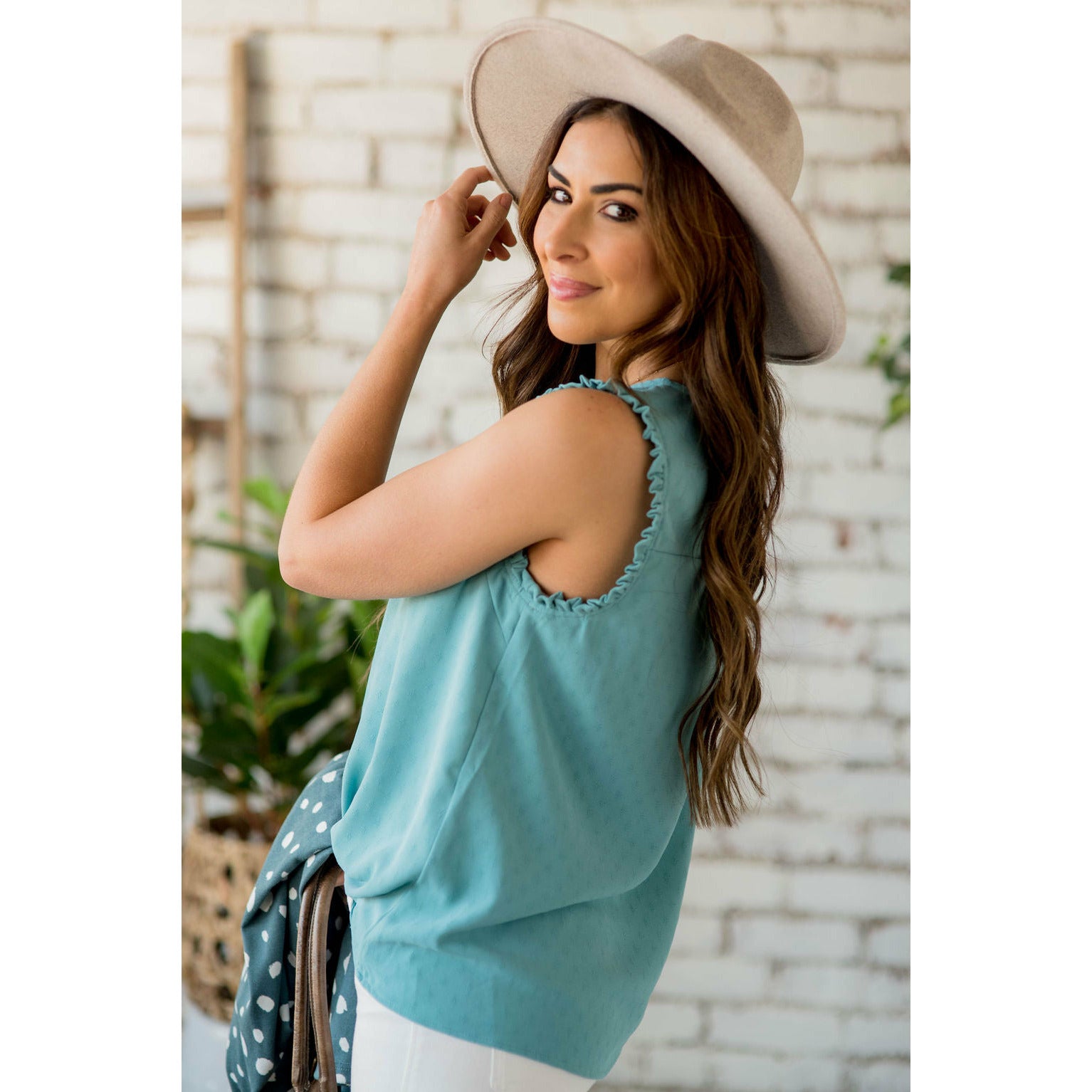 Tanks are a necessity in every closet because they can be styled many ways! Wear this detailed tank by itself on warmer days or layer with a cardigan or jacket on cooler days.