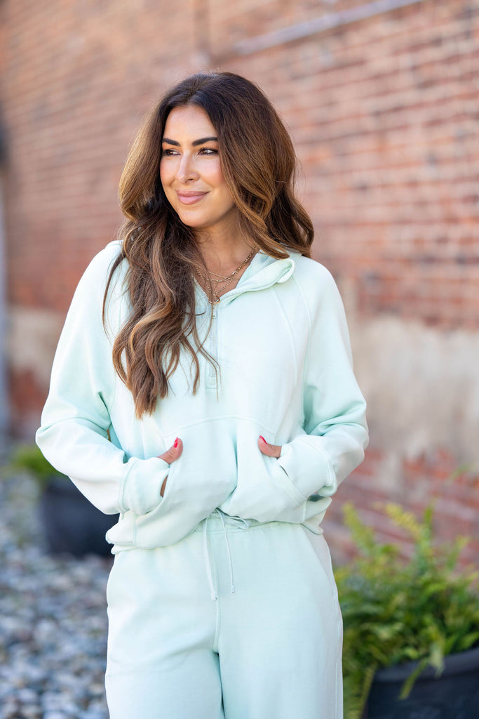 Your new go-to pullover hooded sweatshirt has arrived! Soft and lightweight, this can be worn with shorts in the warmer months or leggings, denim, or joggers in the cooler ones! We love that this can take you from the gym to busy days on-the-go! The scuba material makes this such a comfy piece to have and this pairs perfectly with our Wide Leg Scuba Pants for a complete set!
