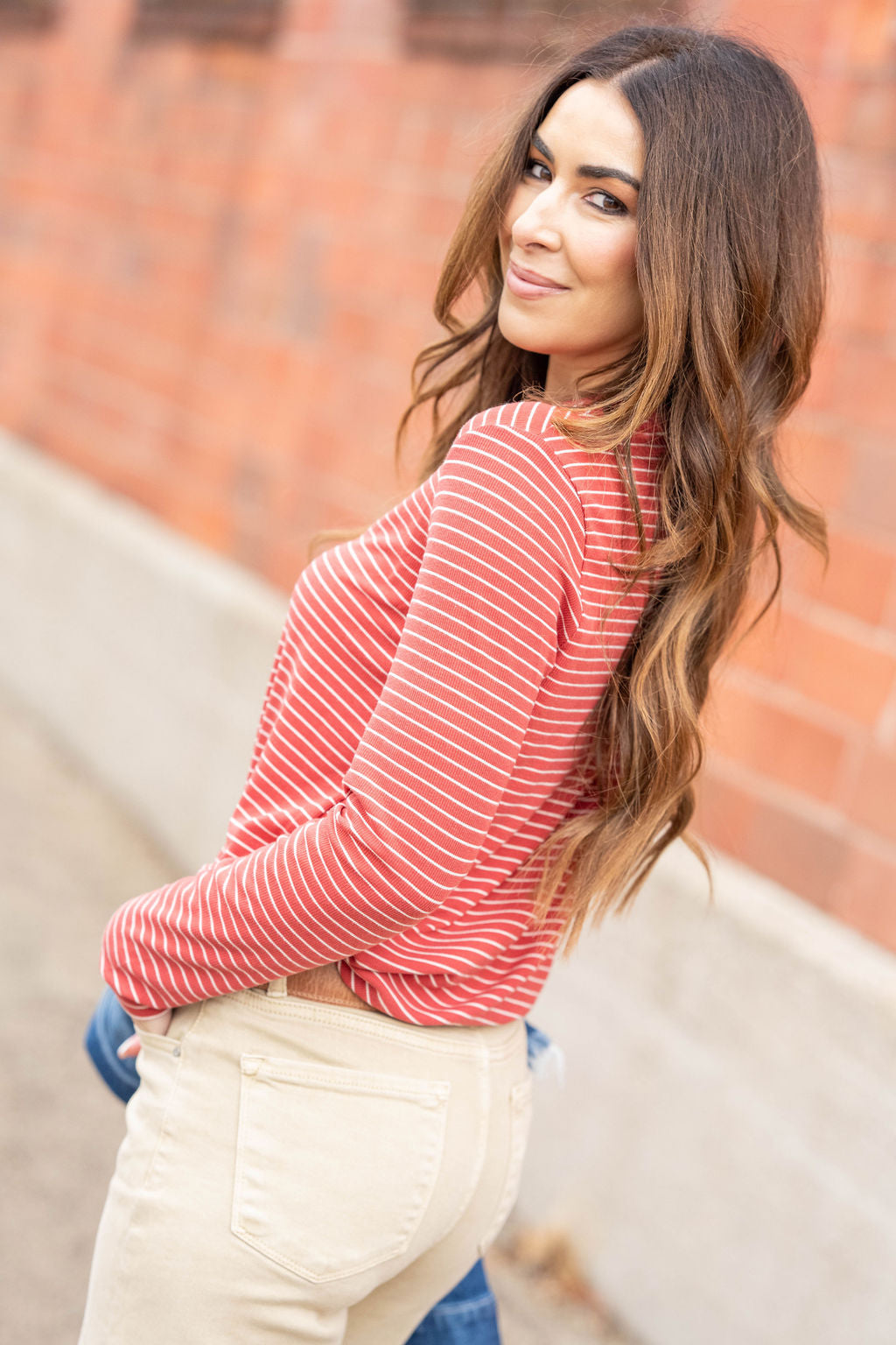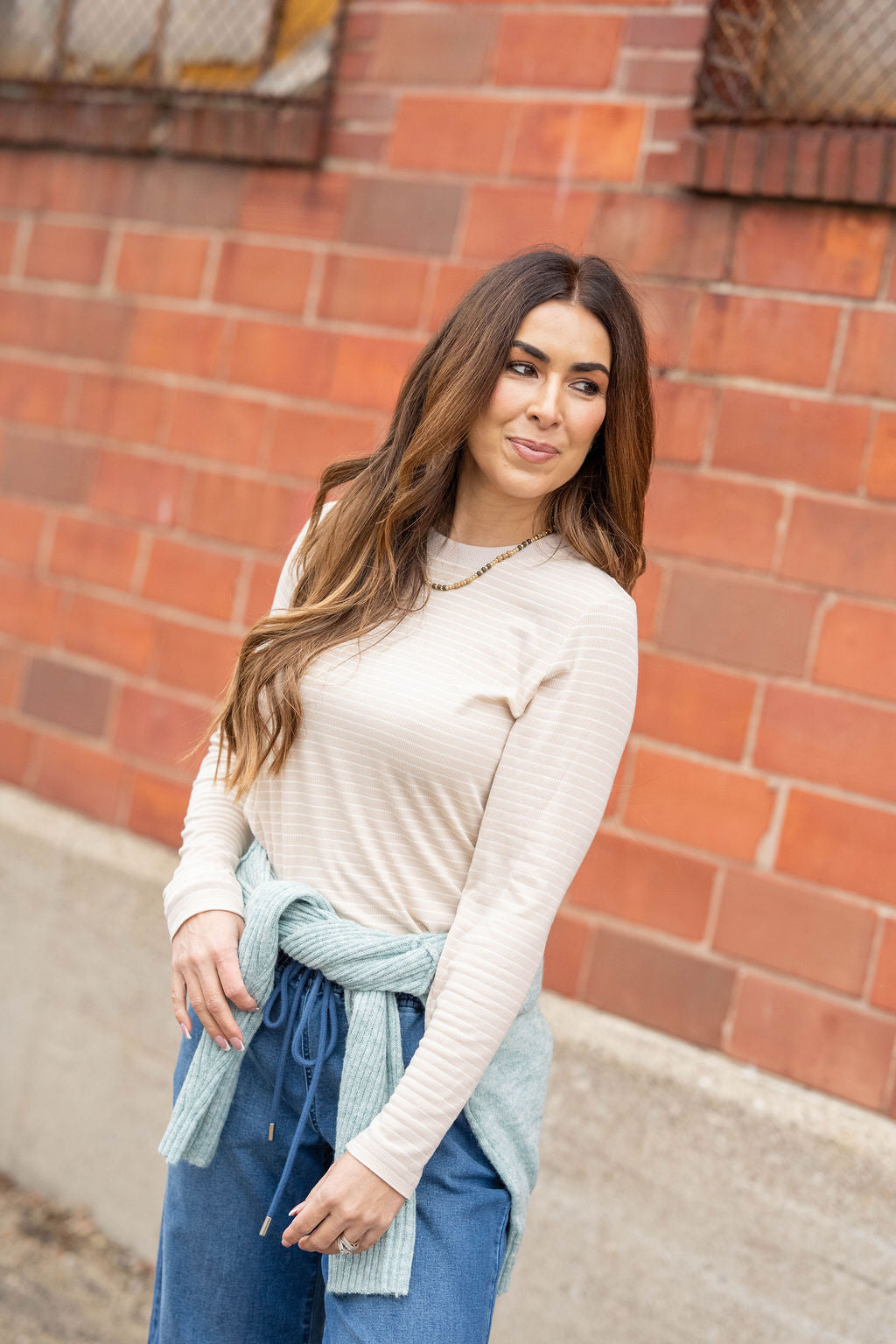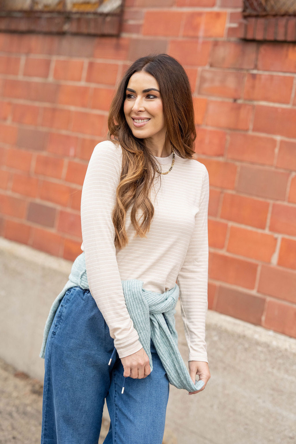 Meet your new everyday essential — a soft long-sleeve top with just the right amount of stretch and texture. The subtle stripe pattern elevates the classic look, while the lightweight ribbed knit keeps things comfortable, breathable, and easy to layer.