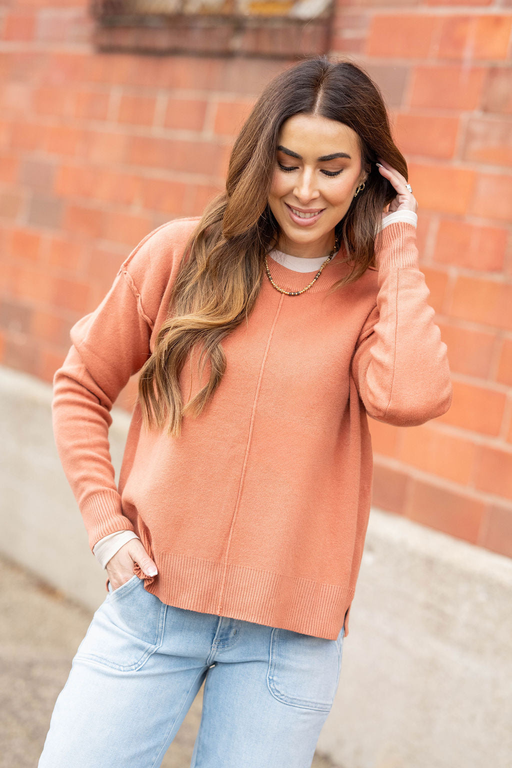 Effortlessly cozy with a clean, modern edge—this Soft Stitch Front Seam Sweater is the perfect everyday layer. The relaxed fit and ultra-soft knit make it comfortable for all-day wear, while the exposed seam detailing adds just the right amount of character.