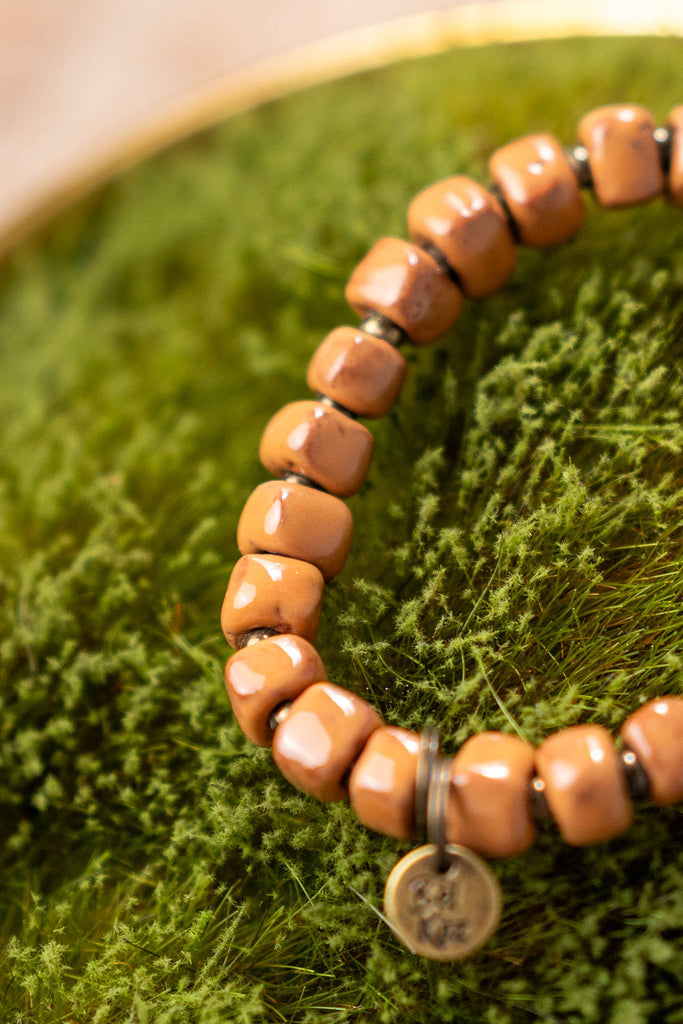 Handmade clay beaded bracelets that are the perfect addition to any outfit that can either be worn alone, or stacked to be the statement piece of your look.