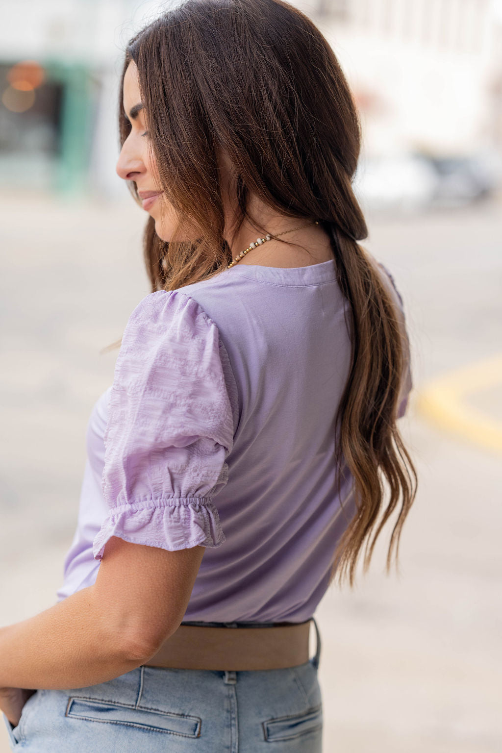 - Ruffle sleeves for a feminine touch