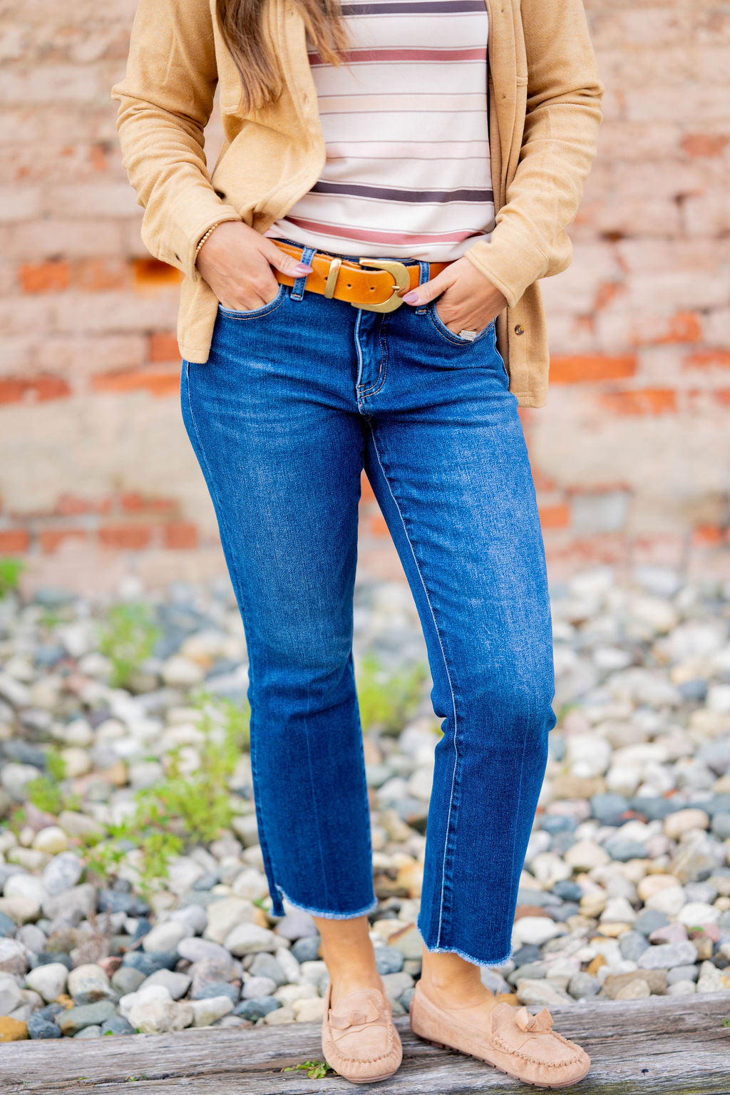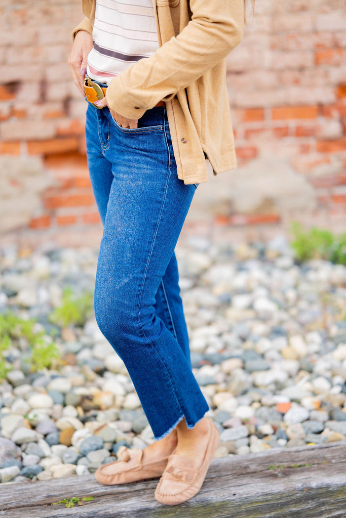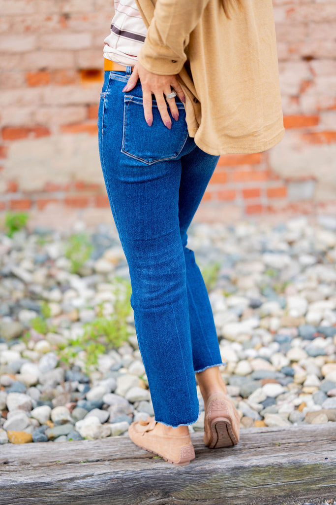 The Annabel Jean is designed to take you from casual coffee runs to nights out with ease. With a sleek cropped cut and raw hem finish, these jeans give you modern polish with an edge.