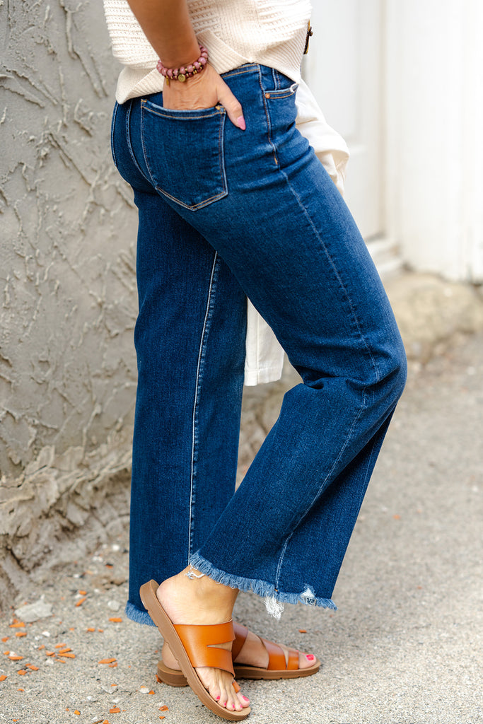 These high-rise jeans feature a straight leg and distressed ankle-cropped bottom. Dress these up or down for everyday wear!