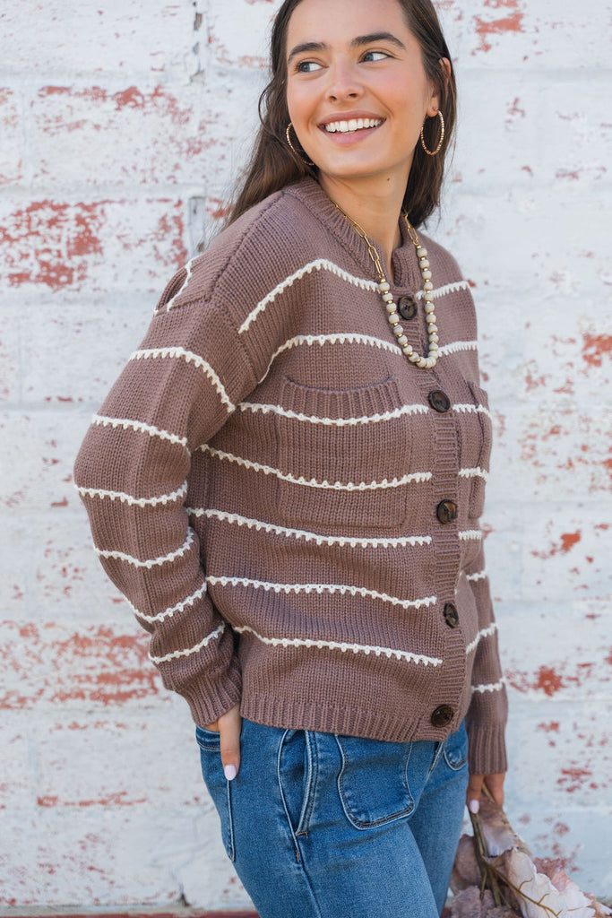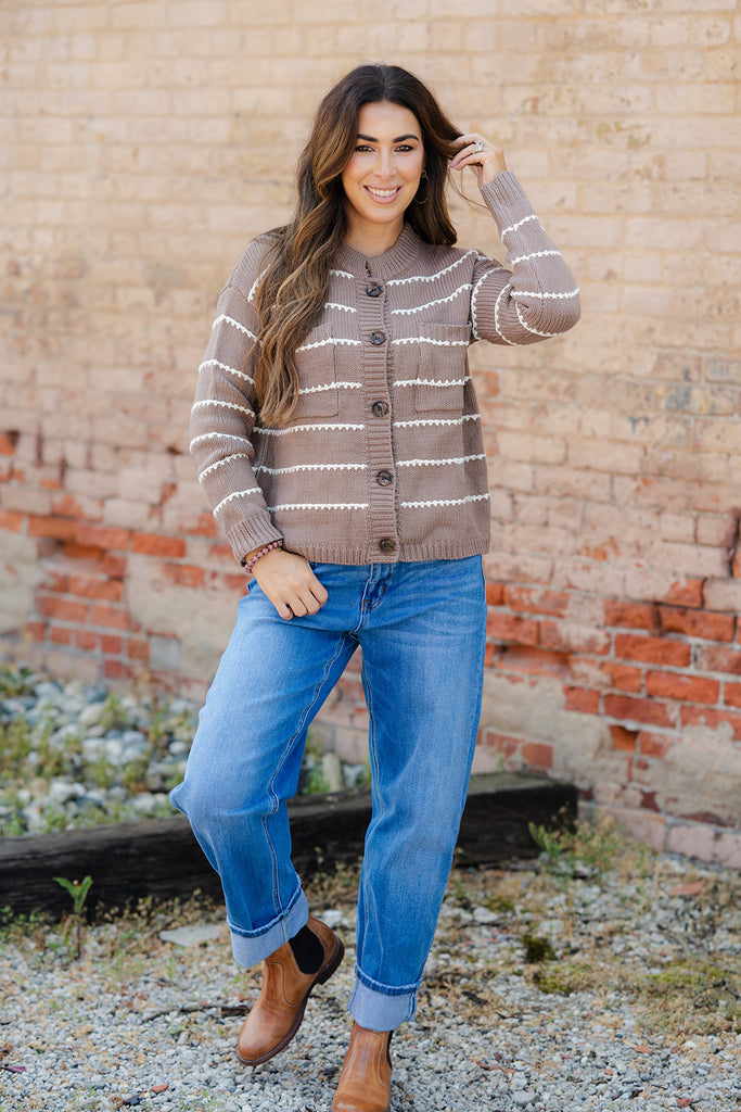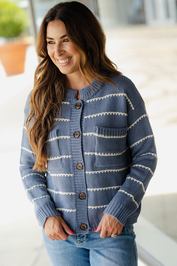Cardigans are a staple piece in every girls wardrobe! Easy to style and they can help transition you through seasons! The scallop stitched detailing, added pockets, and button accents of this cardigan give it that extra special detail to set it apart from the rest. Leave this buttoned up like a sweater or wear over a basic or graphic tee, dress, or blouse!