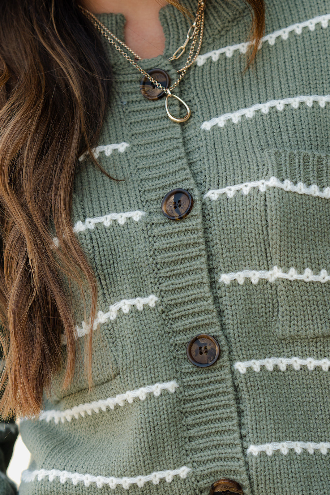 Scallop Stitched Button Accented Cardigan