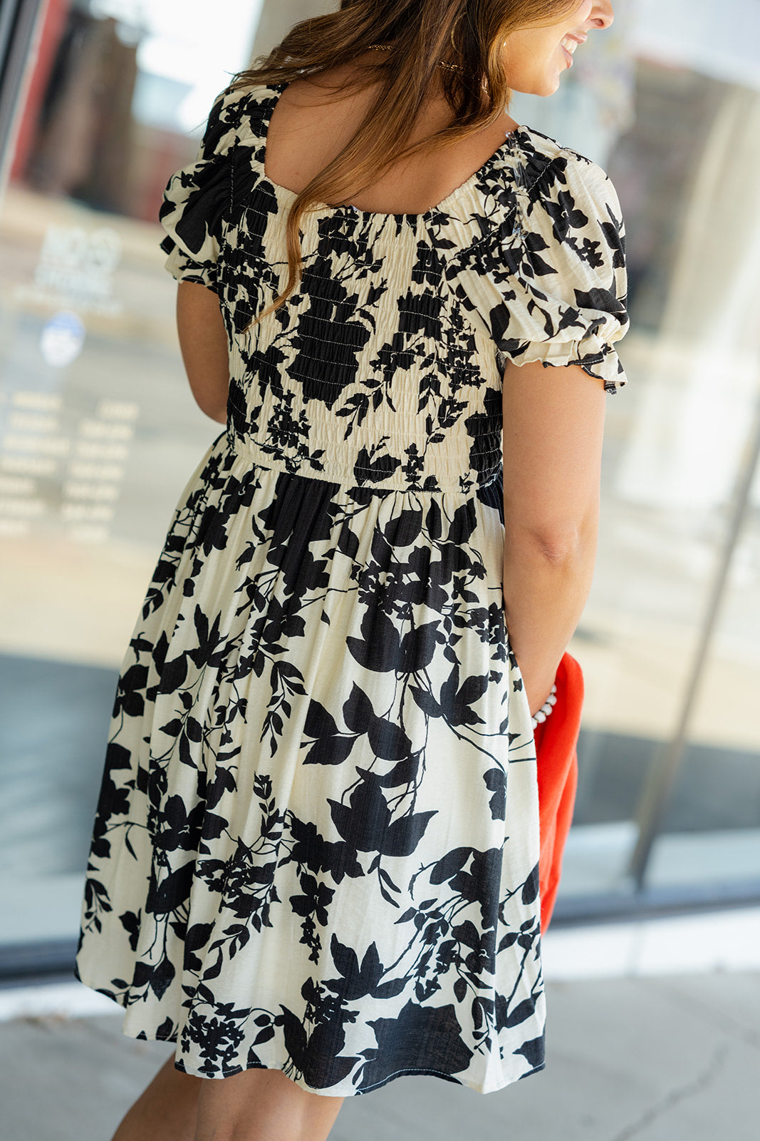 This dress gives us major feminine and flirty vibes! The lightweight and breathable material and flowy fit makes it ideal for those hot days but this can just as easily be layered with a cardigan or denim jacket and boots! The smocked top against the flowy bottom gives a nice slimming effect and we're loving the puff sleeves and the stunning floral print to set it apart from the rest!