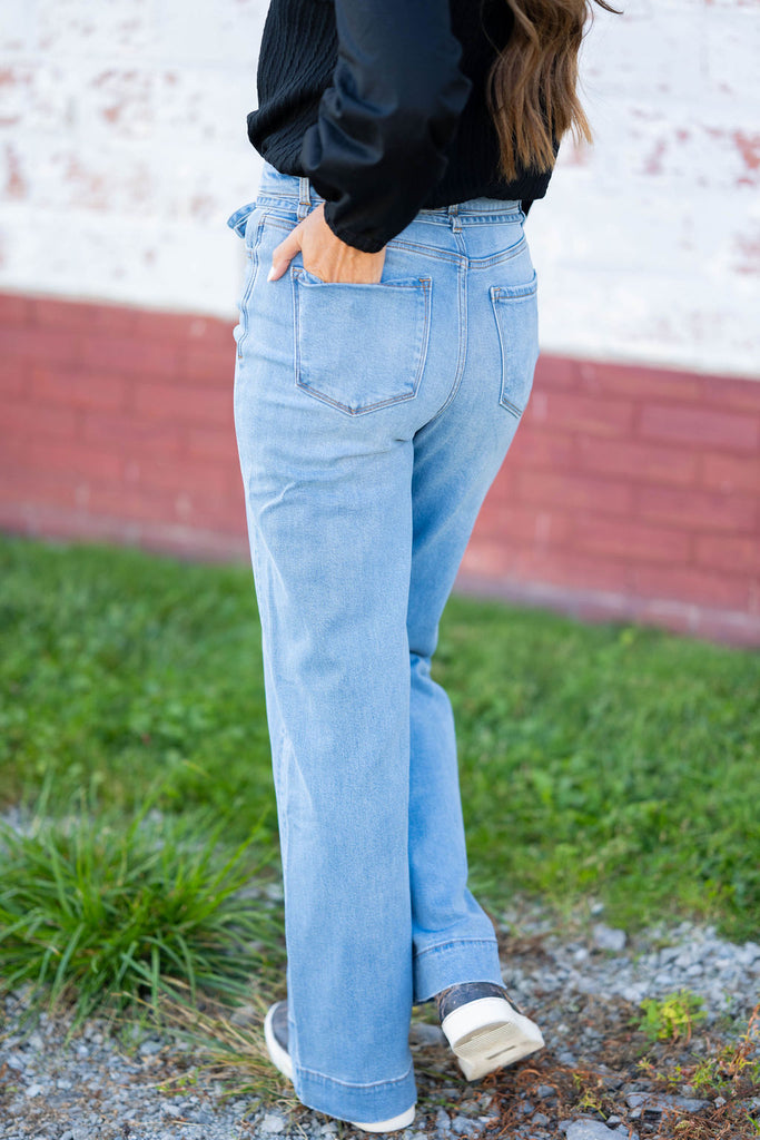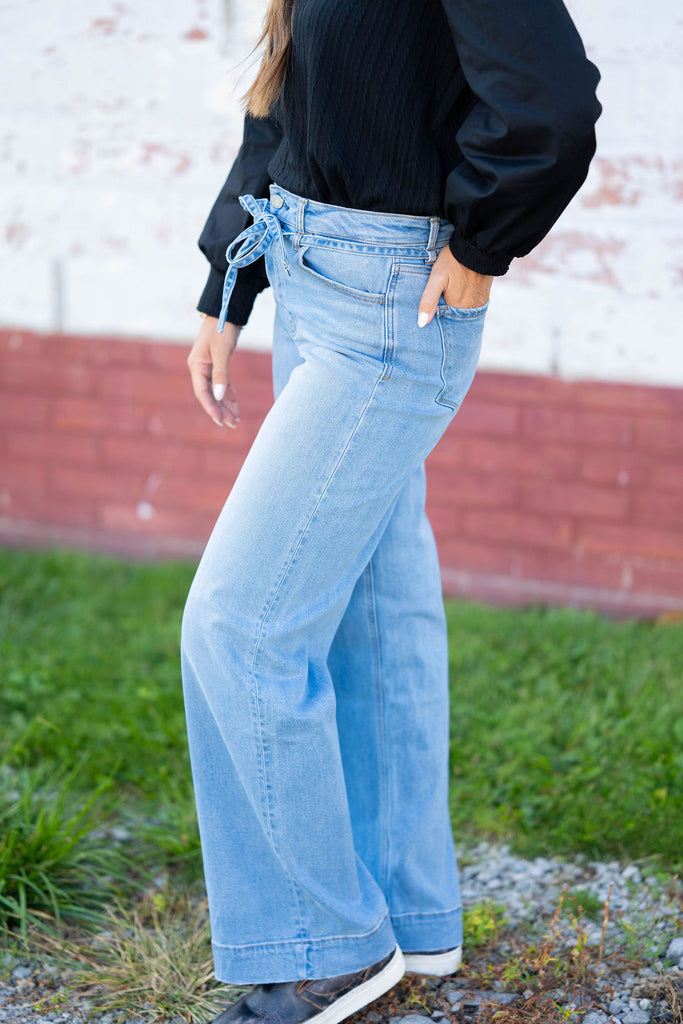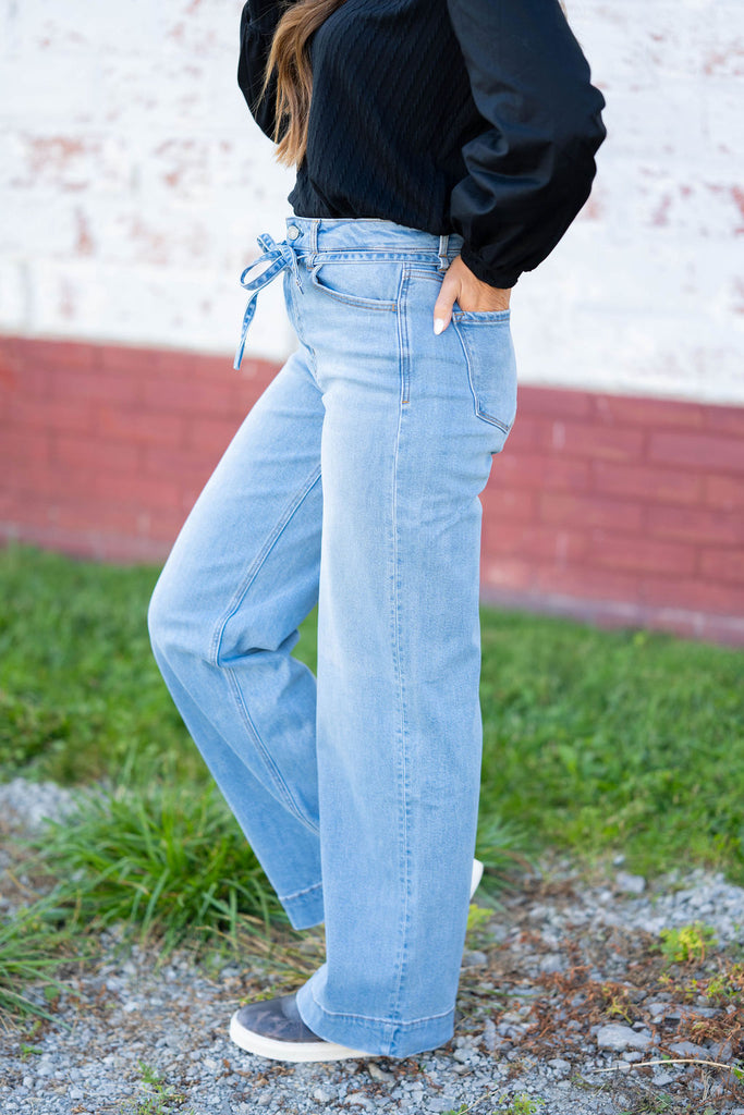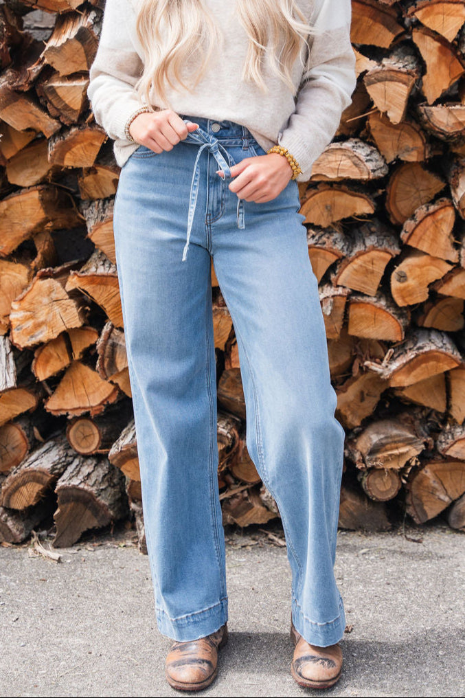 An easy blend of comfort and style—these wide-leg jeans bring a fresh twist to classic denim with their flattering drawstring waist. Perfect for pairing with fitted tops, cozy knits, or flowy blouses, they’ll be your new everyday favorite.