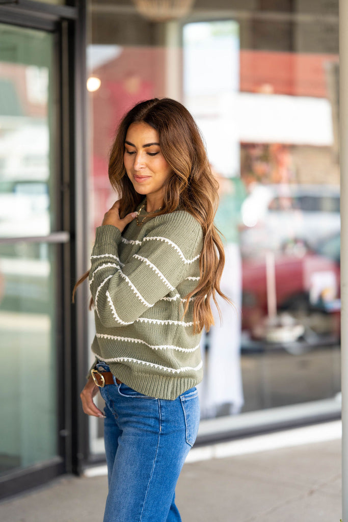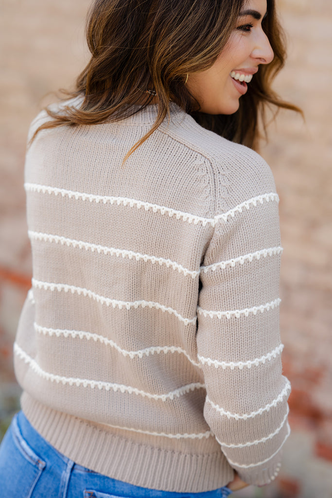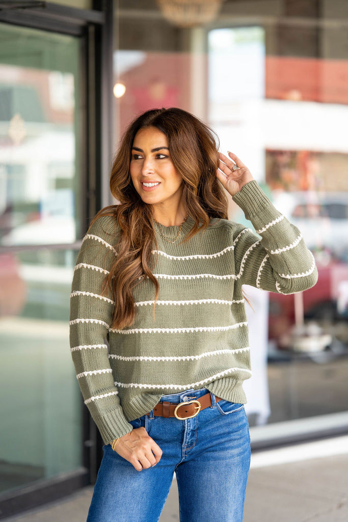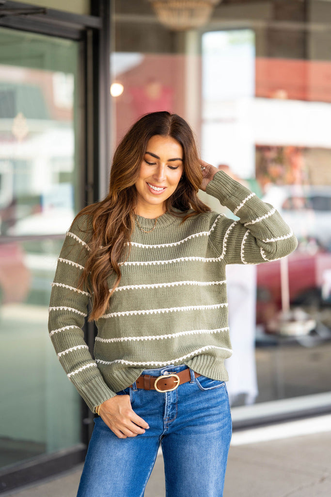 Stitched Stripes Accented Sweater