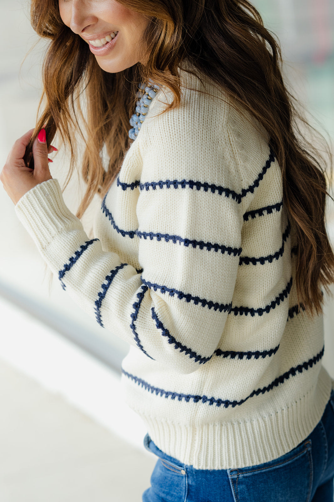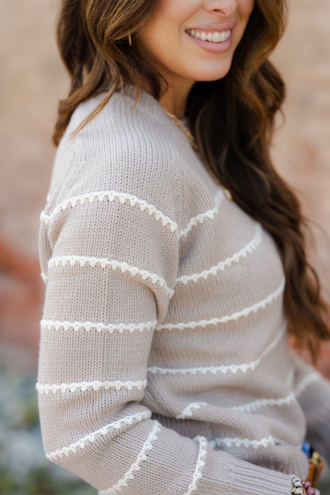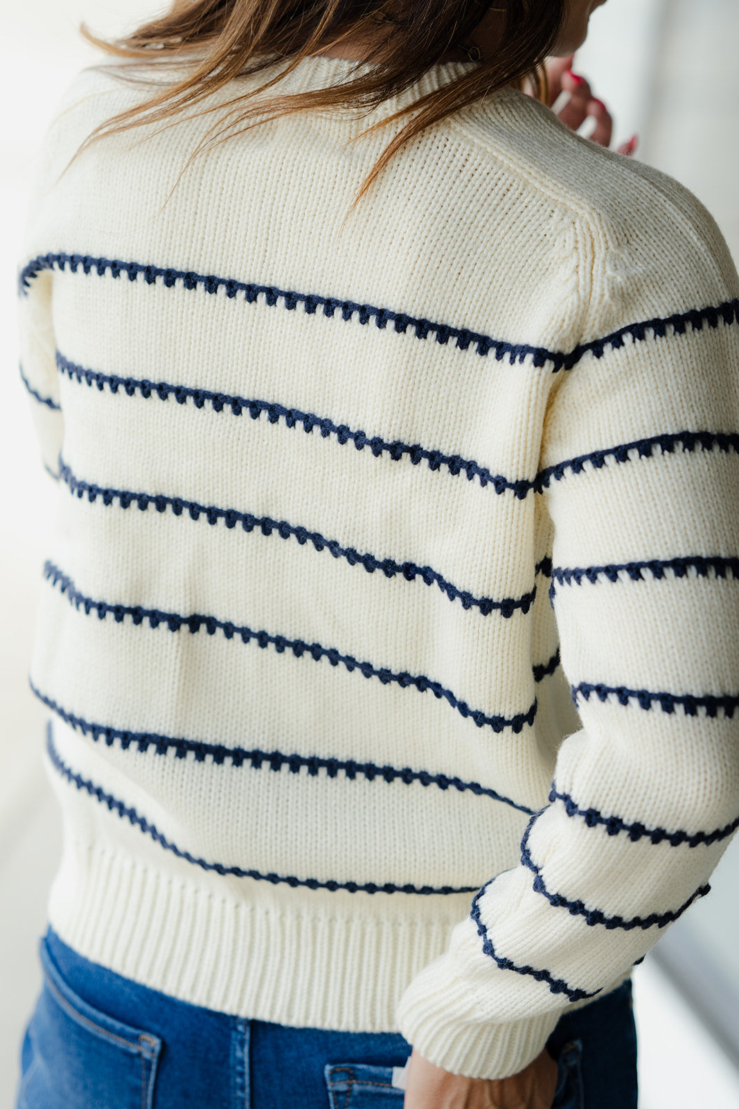 Stitched Stripes Accented Sweater
