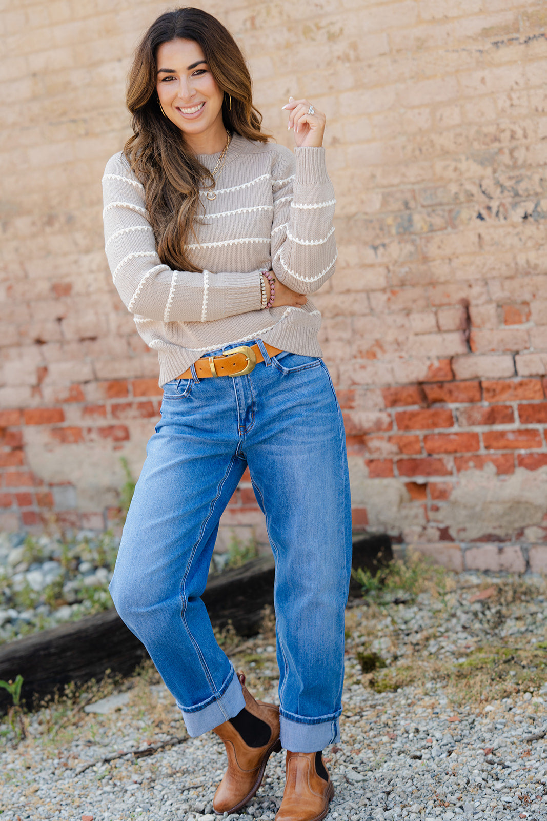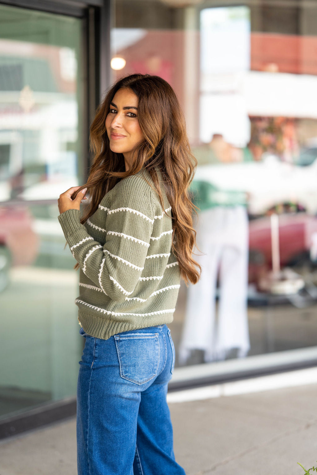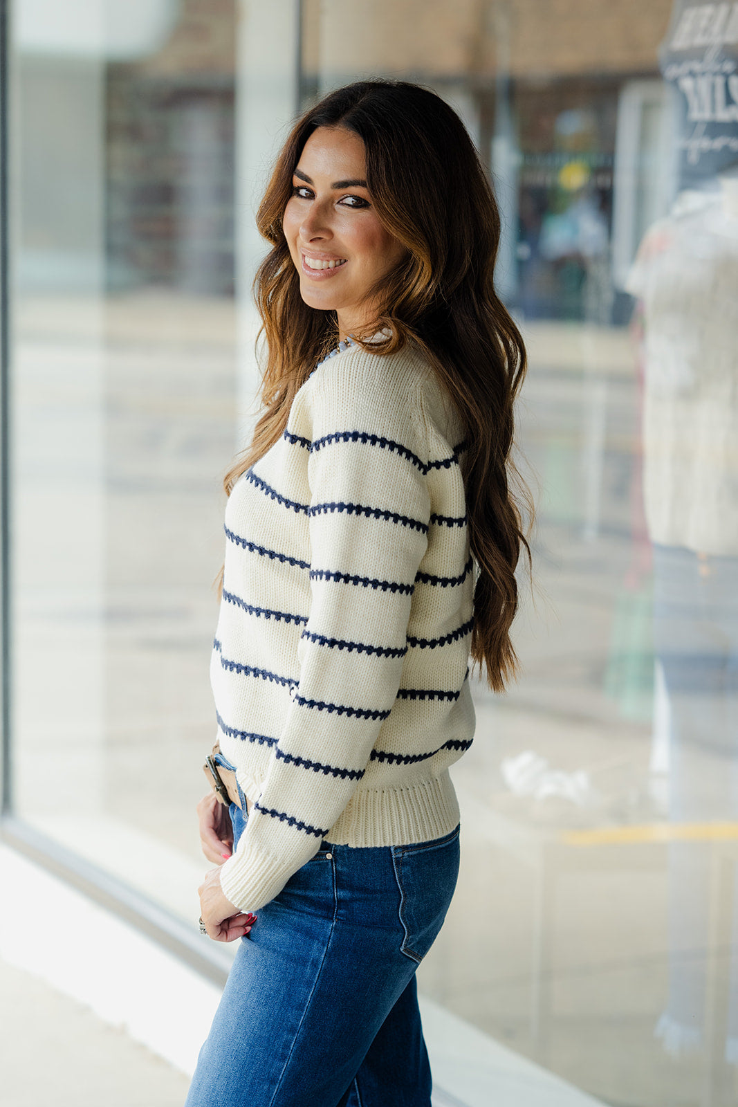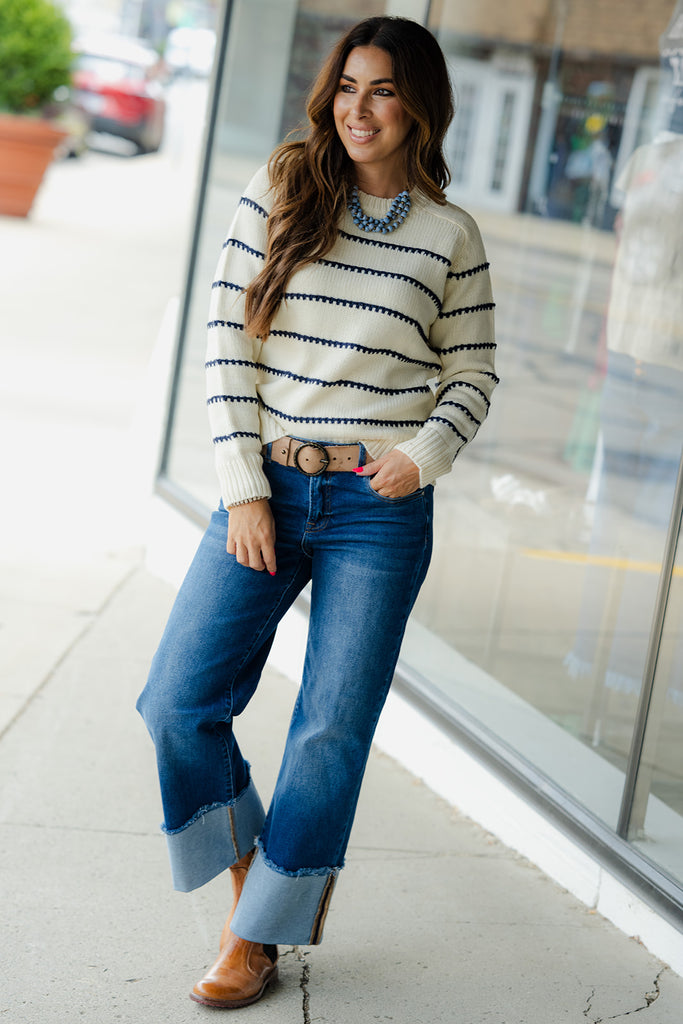 Is it even possible to have too many sweaters?! We don’t think so either! This sweater has the perfect stitch stripes accents that come together to create this staple piece that you NEED in your wardrobe! Dress this up or down with ease, add a pop of color with our Betsey’s Jeggings or keep it simple with your favorite denim, however you choose to style it, we know this will be one of your favorites!
