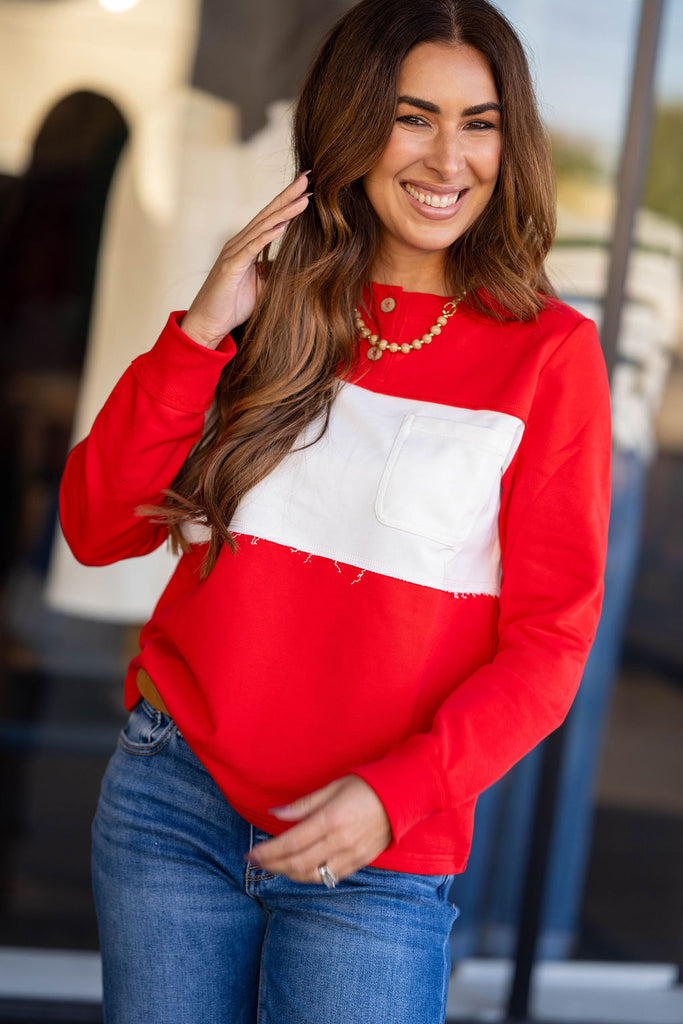 A standout take on a classic crew, this colorblock pullover blends sporty edge with laid-back comfort. The raw-edge seam adds just the right touch of texture, while the relaxed fit keeps it effortlessly wearable all year long.