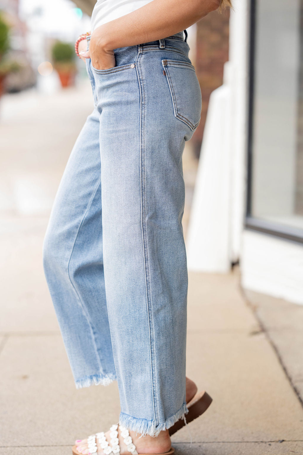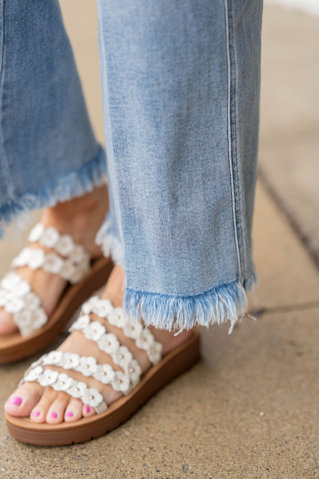 - Raw frayed hem for a laid-back finish