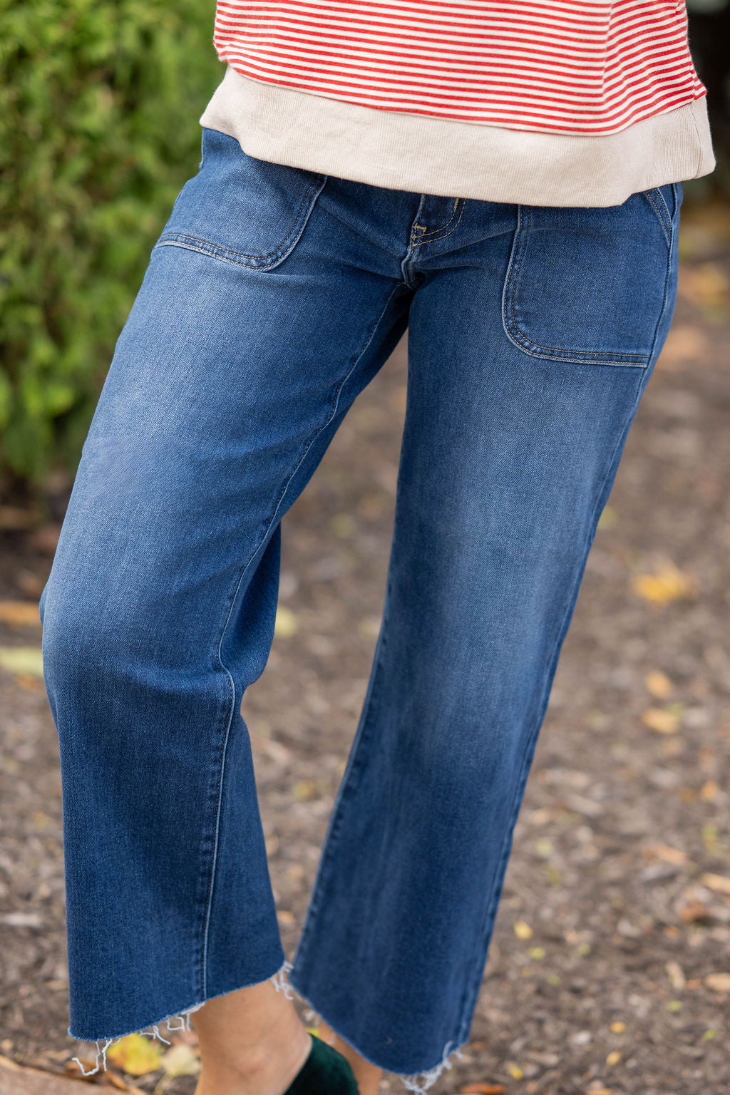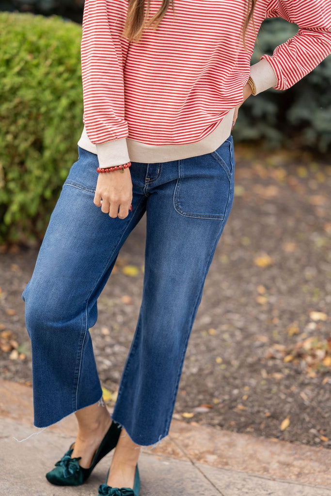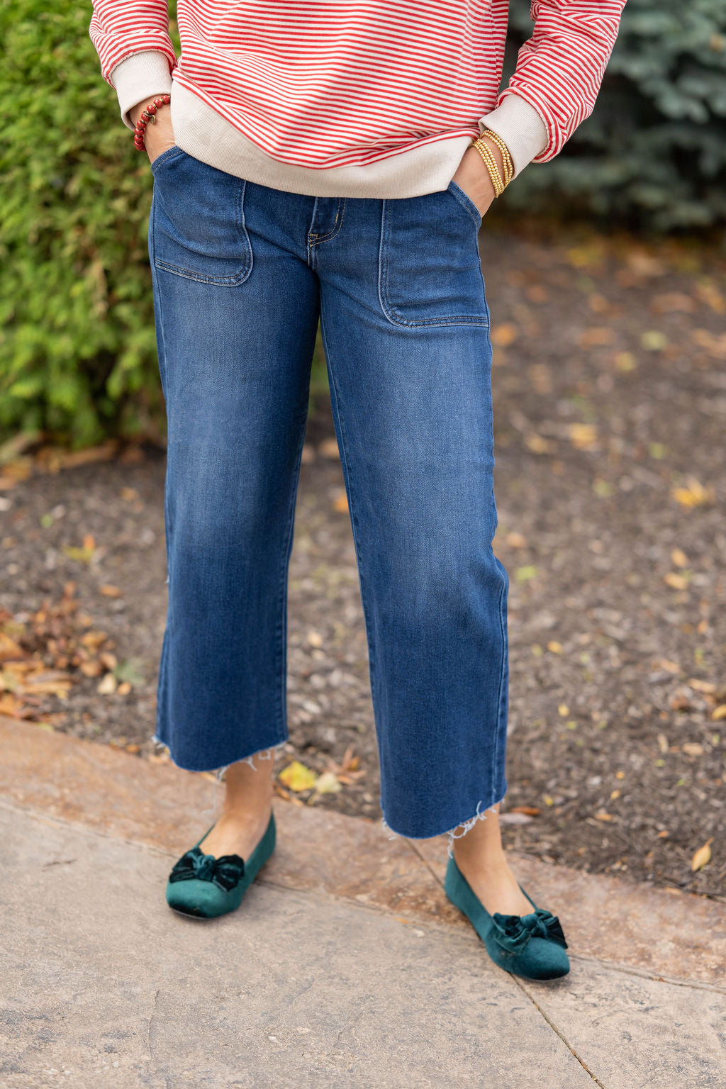 Easy, relaxed, and endlessly wearable. The Weekend Crop Jean features a flattering mid-rise fit with front patch pockets and a gently frayed hem for that lived-in finish. Perfect for pairing with sneakers, flats, or boots year-round.