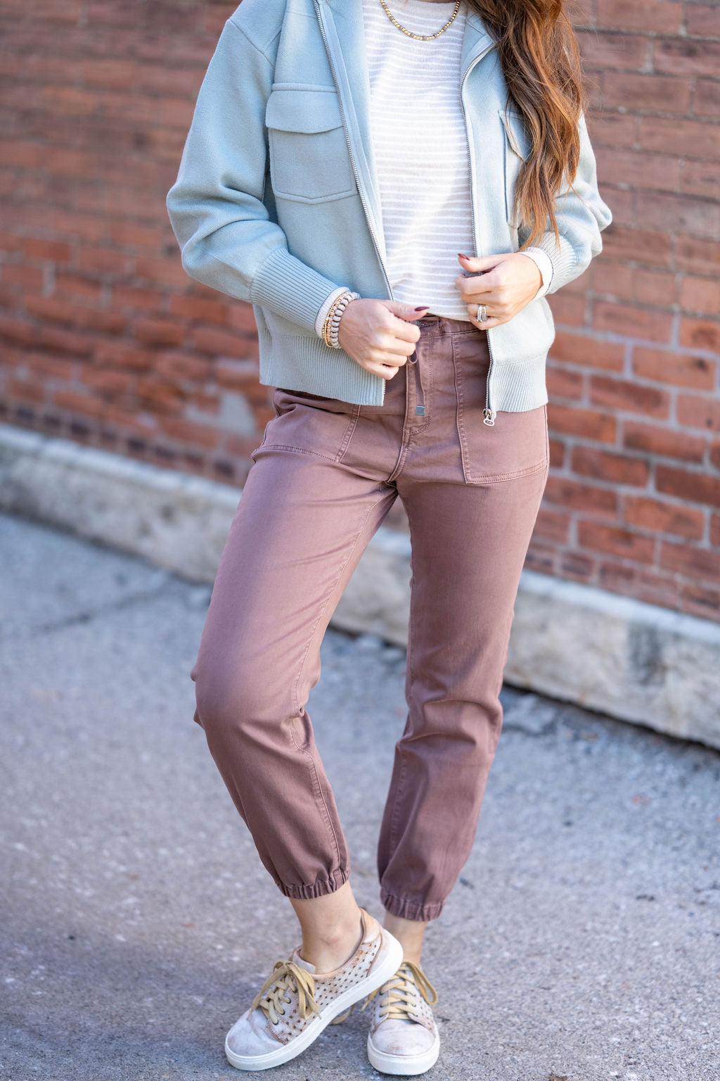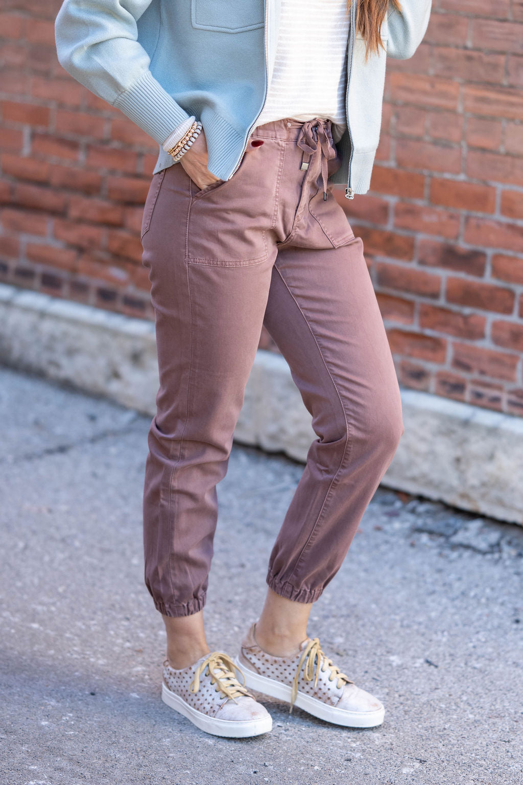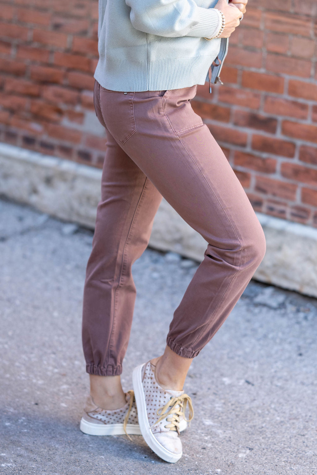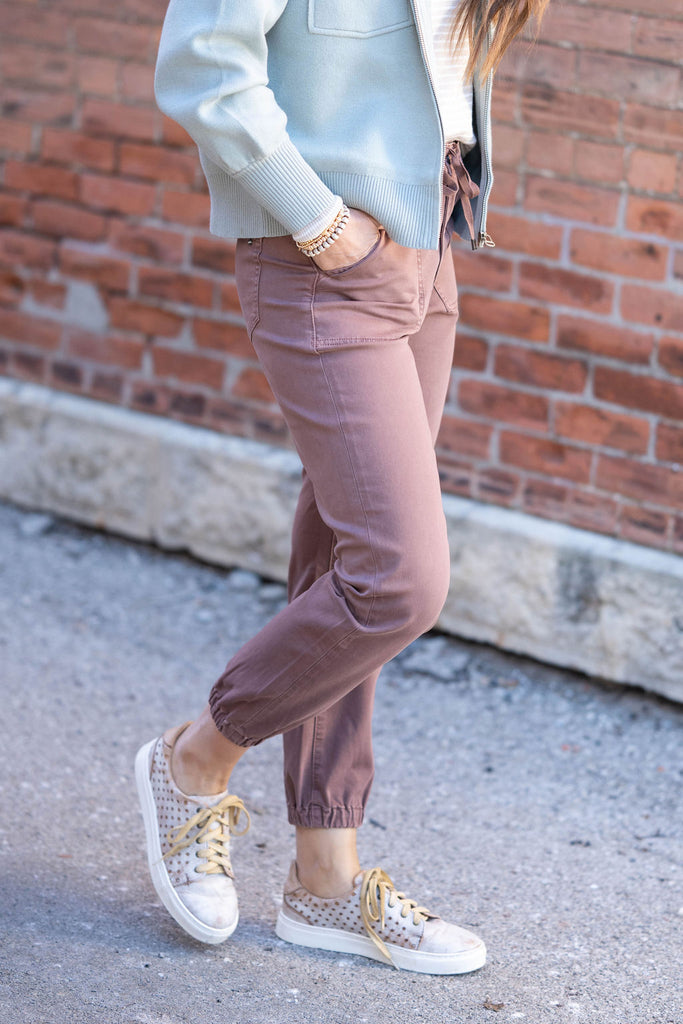 Effortless comfort meets everyday style in these sleek joggers. With a flattering high-rise fit and elasticized cuffs, they’re the perfect pick for casual days that still call for a little polish.