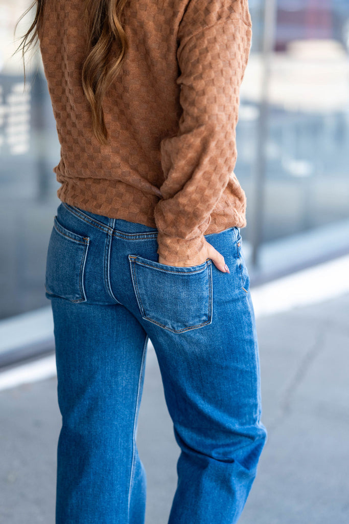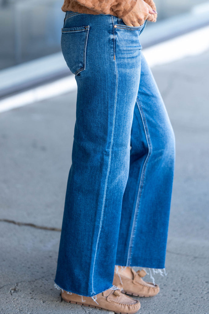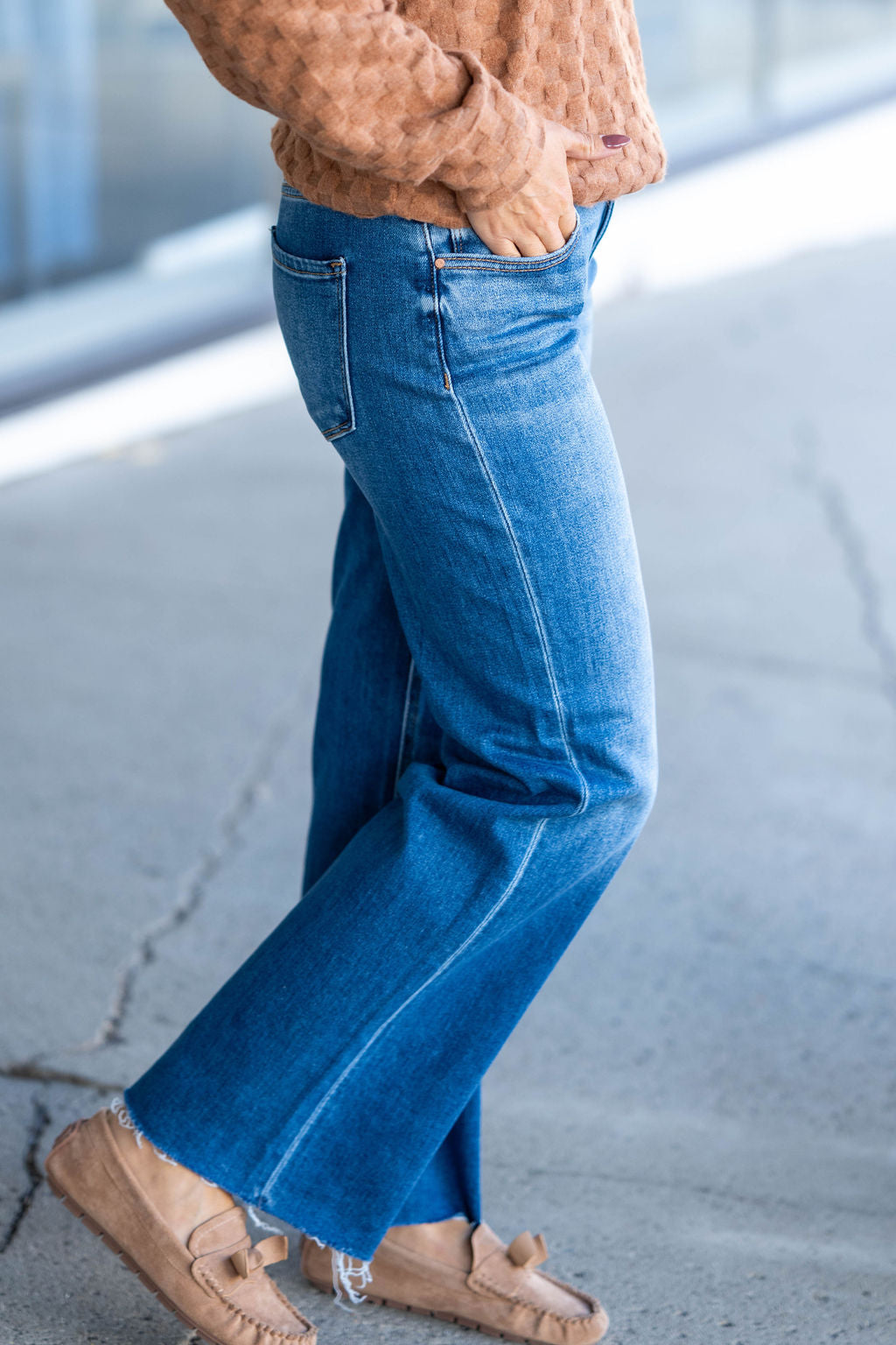 Classic and easy to wear, these jeans bring timeless charm with their raw hem and soft flare. The river wash gives them a lived-in look, while the cut flatters in all the right places.