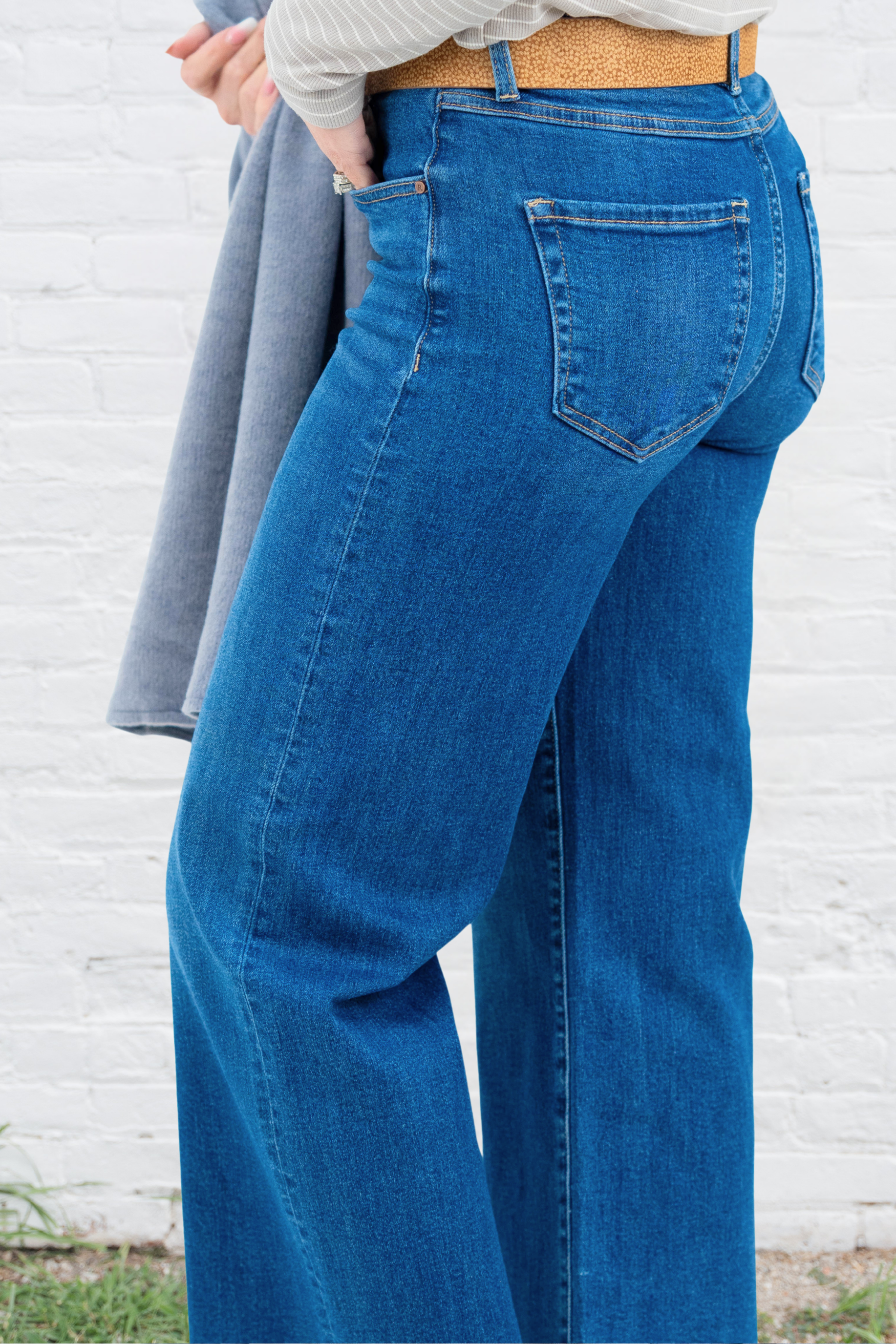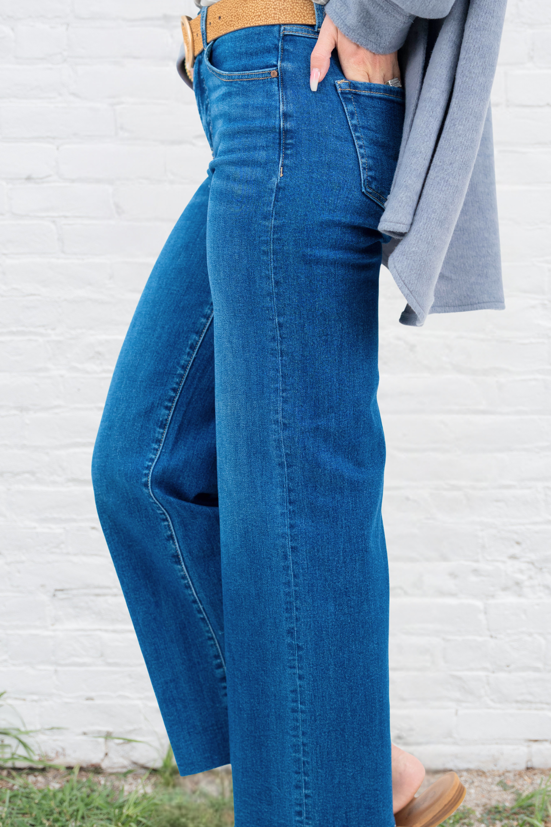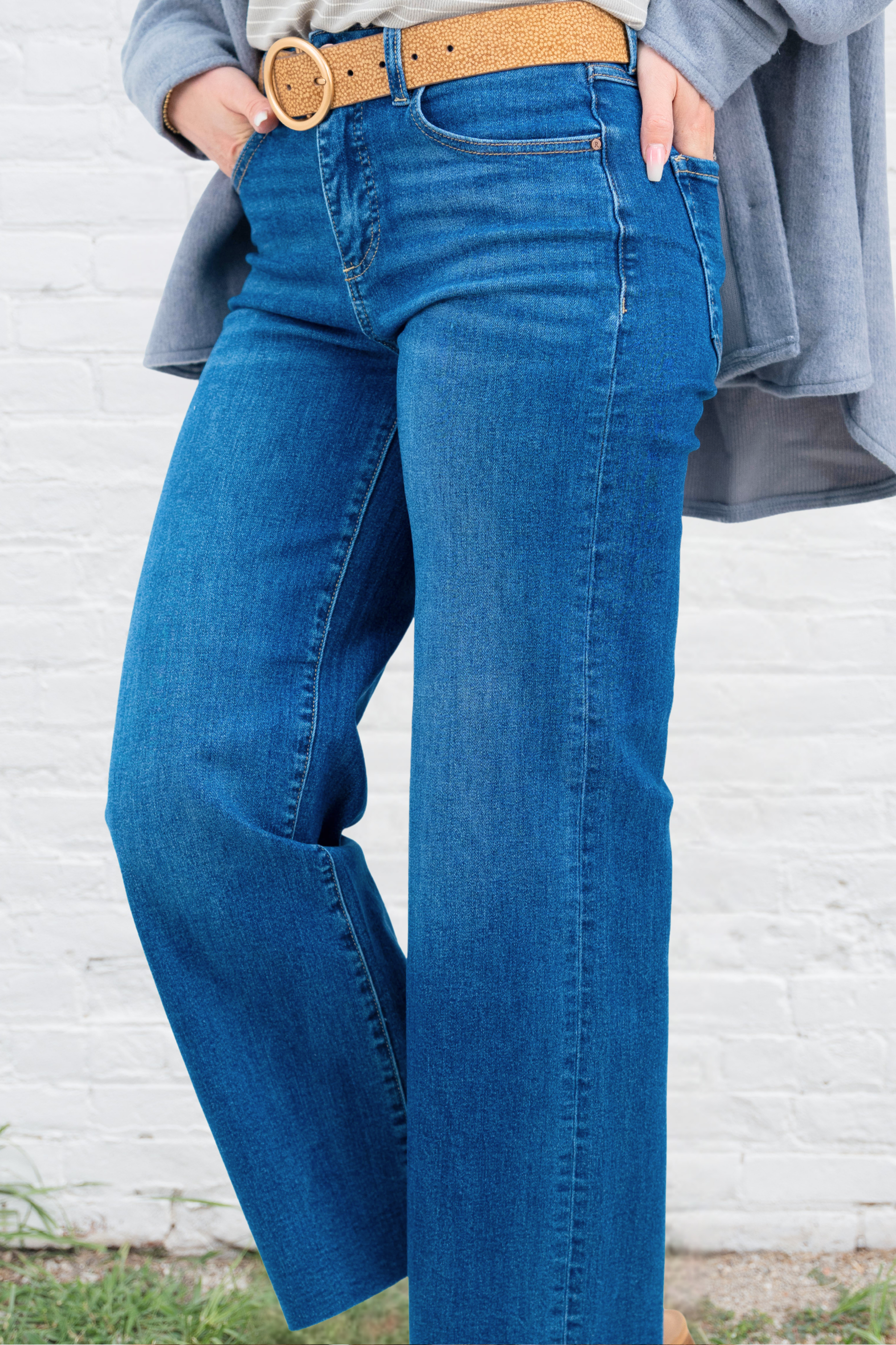A timeless pair with a modern, flattering fit—these wide leg jeans are the denim every closet needs. The soft, stretch fabric moves with you while keeping its structure, and the clean medium wash makes them endlessly versatile.