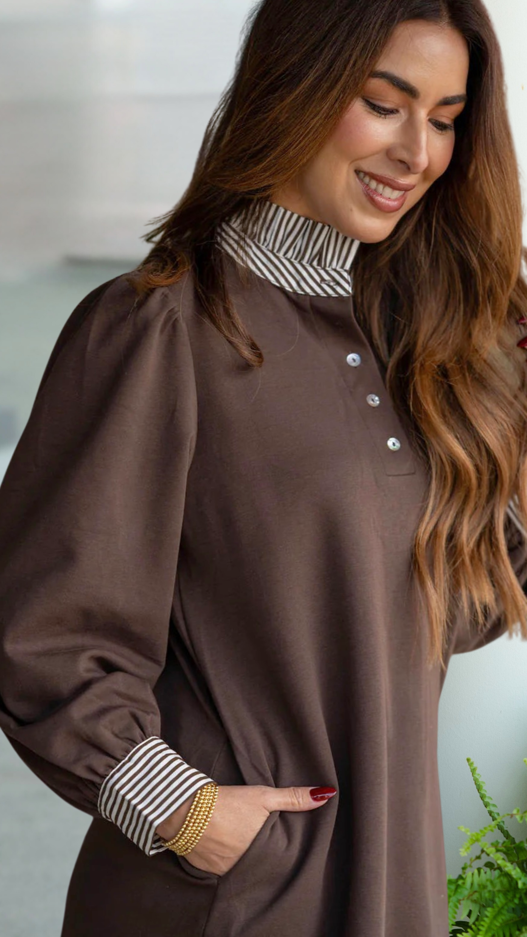 Puff sleeves with striped cuff detail