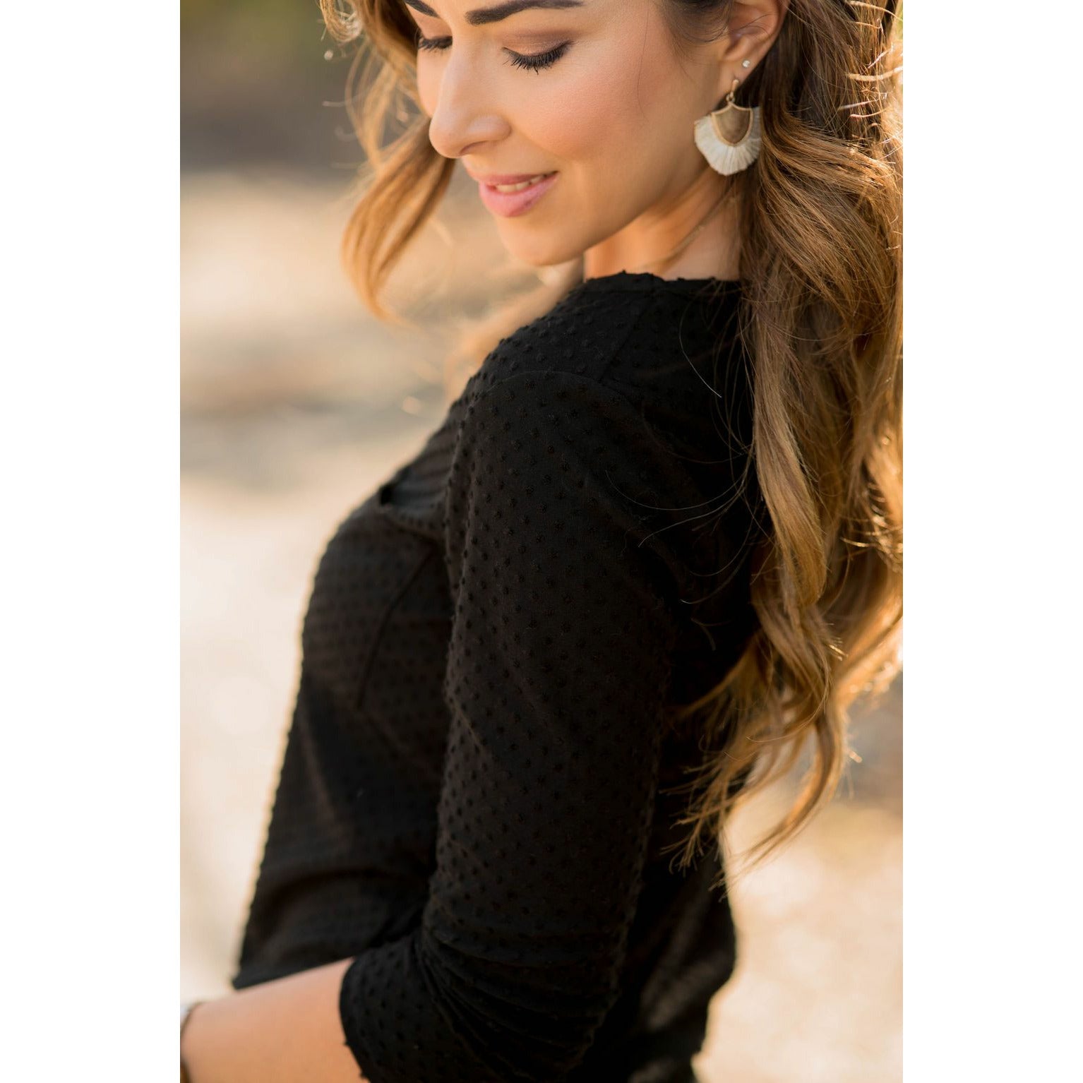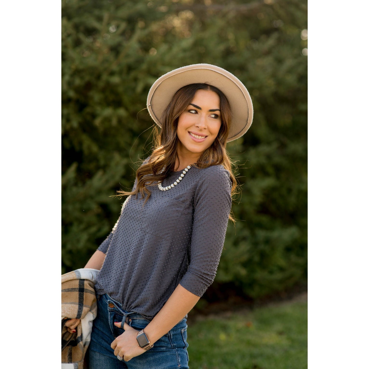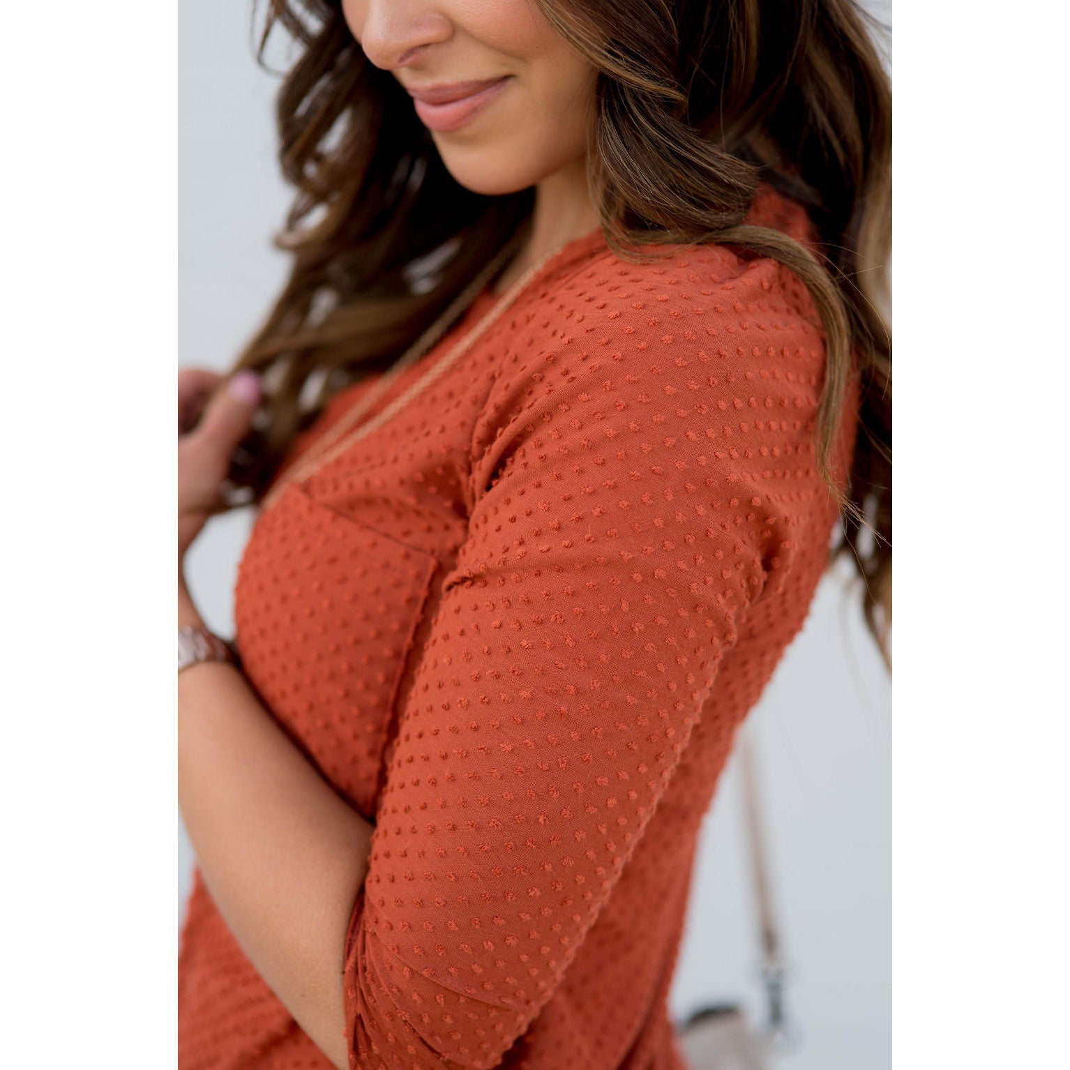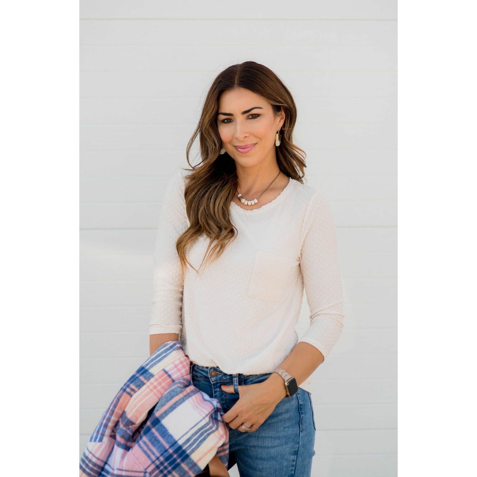 Add this 3/4 Sleeve Textured Pocket Tee to your collection! This textured tee is incredibly soft. Pair with jeggings and a cardigan for that perfect look! This is a tee you will want in every available color!