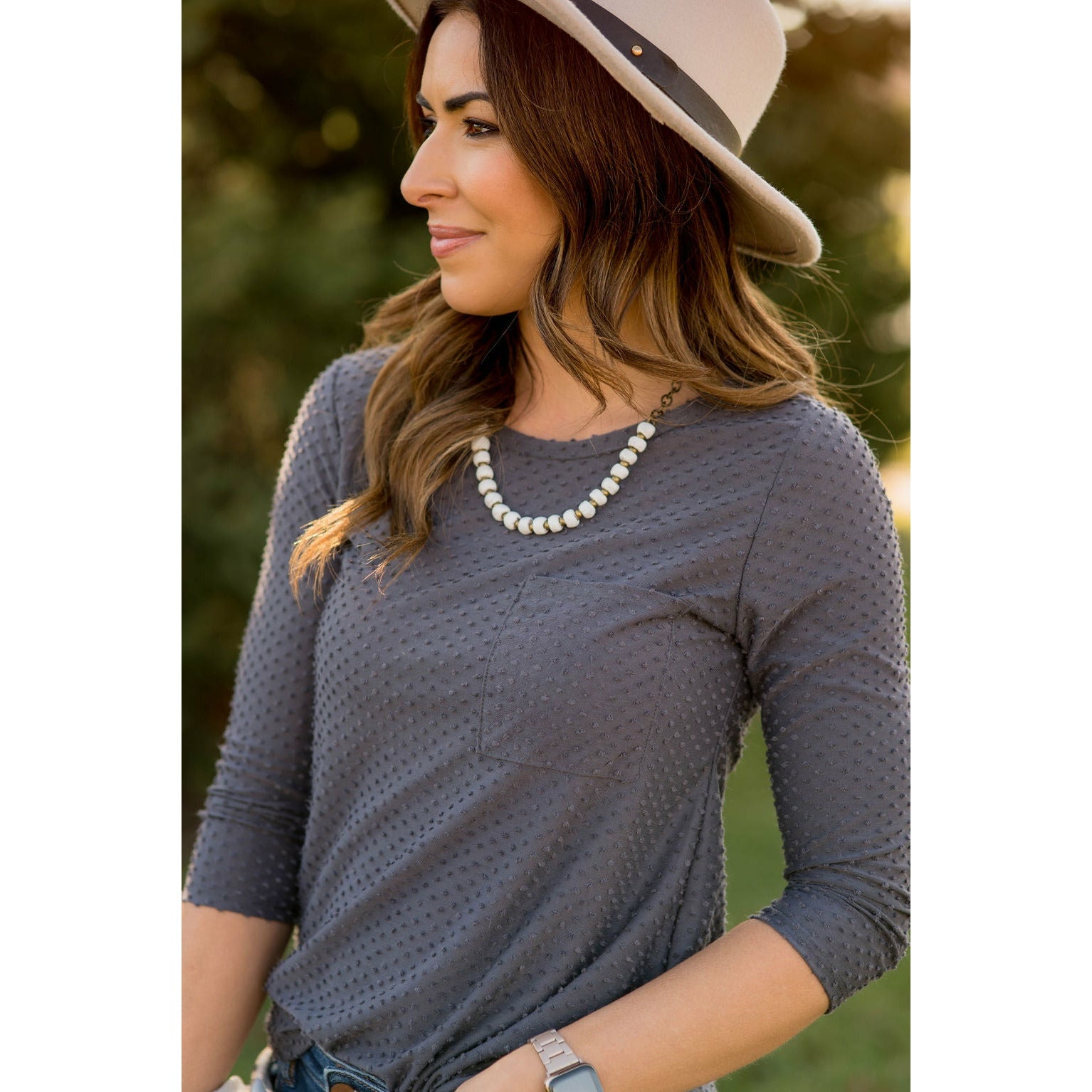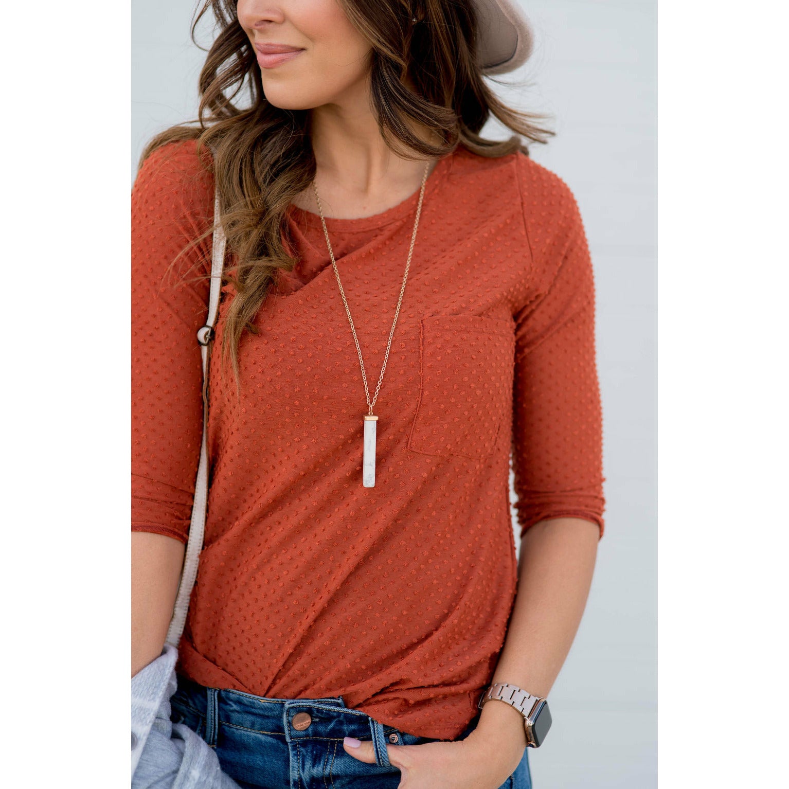 3/4 Sleeve Textured Pocket Tee