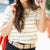 The floral pattern of this tank with the ruffle trim and cinched neck really sets it apart from the rest! We love that you can pair this with shorts or a skirt in the warmer months or with a pair of denim and a cardigan for the cooler ones!