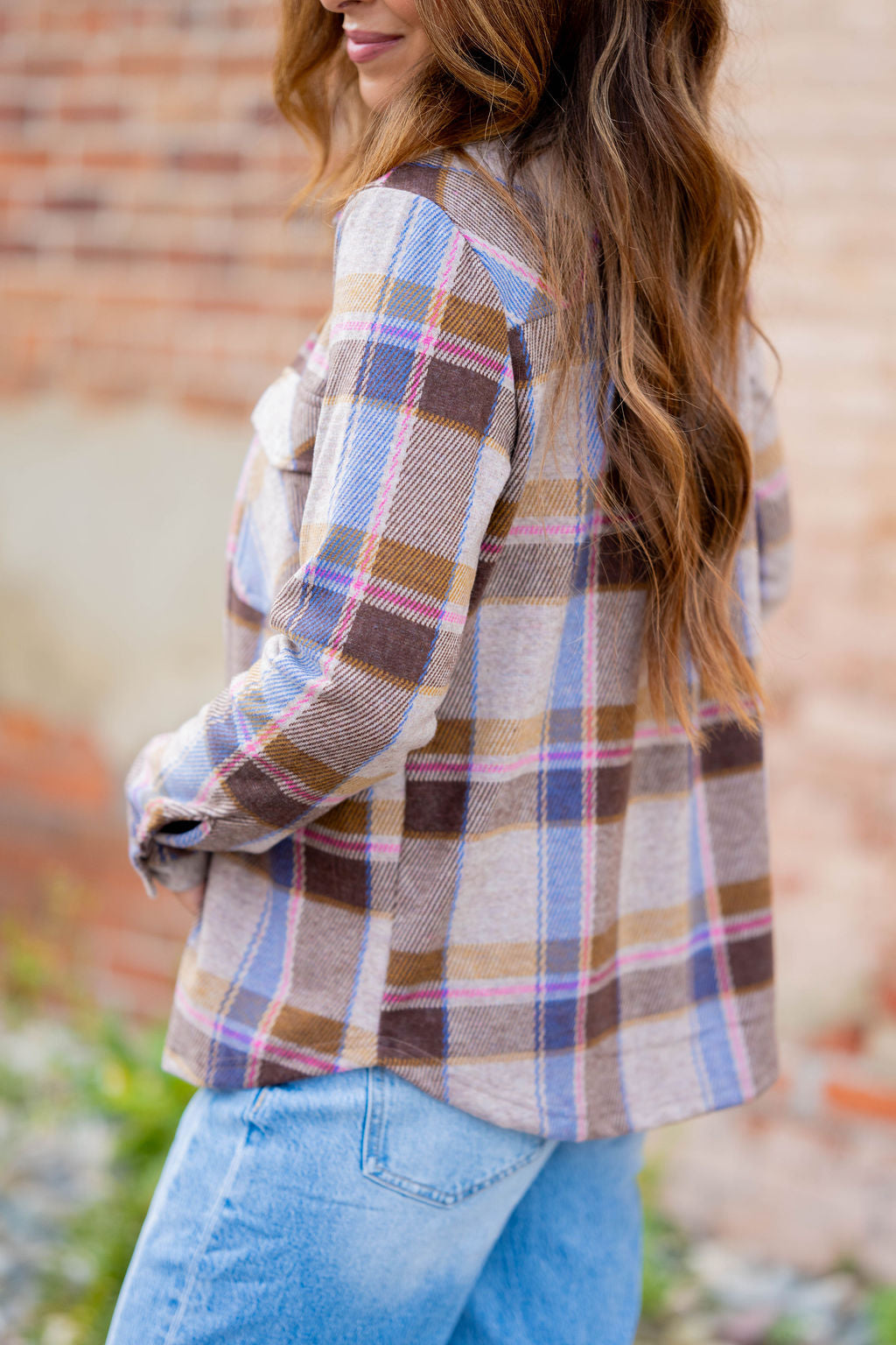 The perfect piece to layer when the temps start to drop, this plaid shacket is a cozy-meets-chic must-have. With soft fabric and a classic pattern, it’s easy to style for any fall outfit.