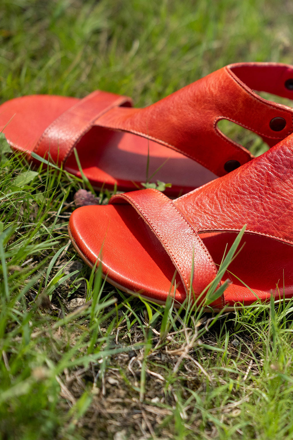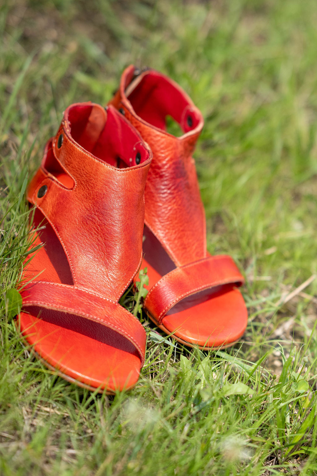 Vegetable Tanned Leather, Genuine full grain leather upper, Handmade. Leather sole with a rubber heel for traction.