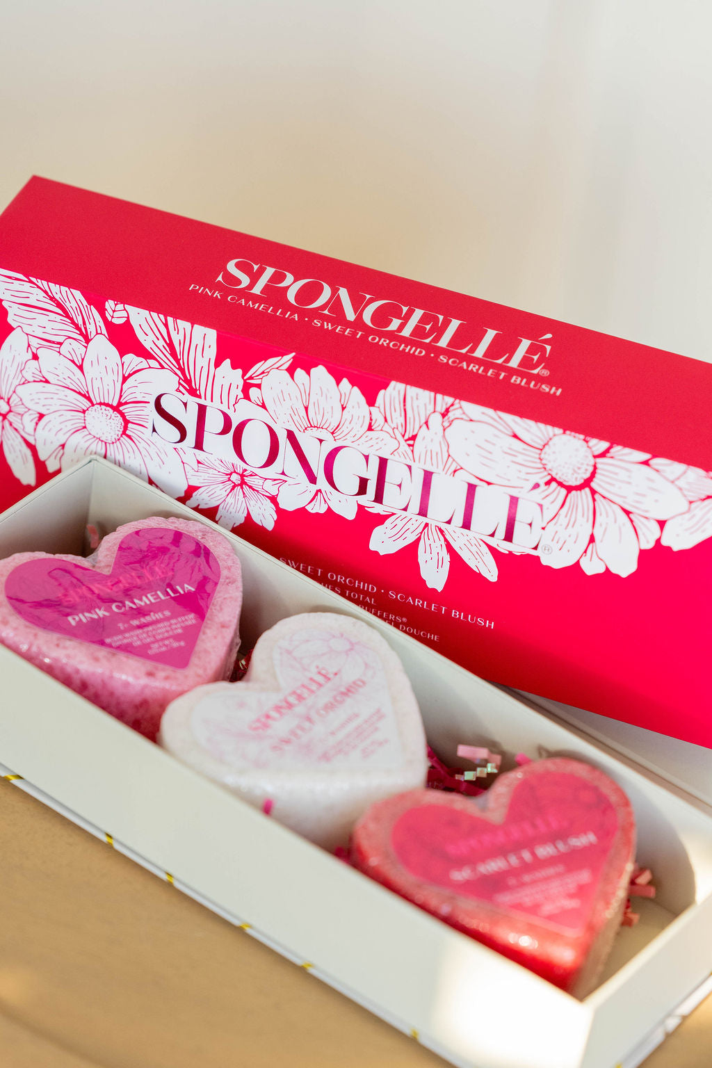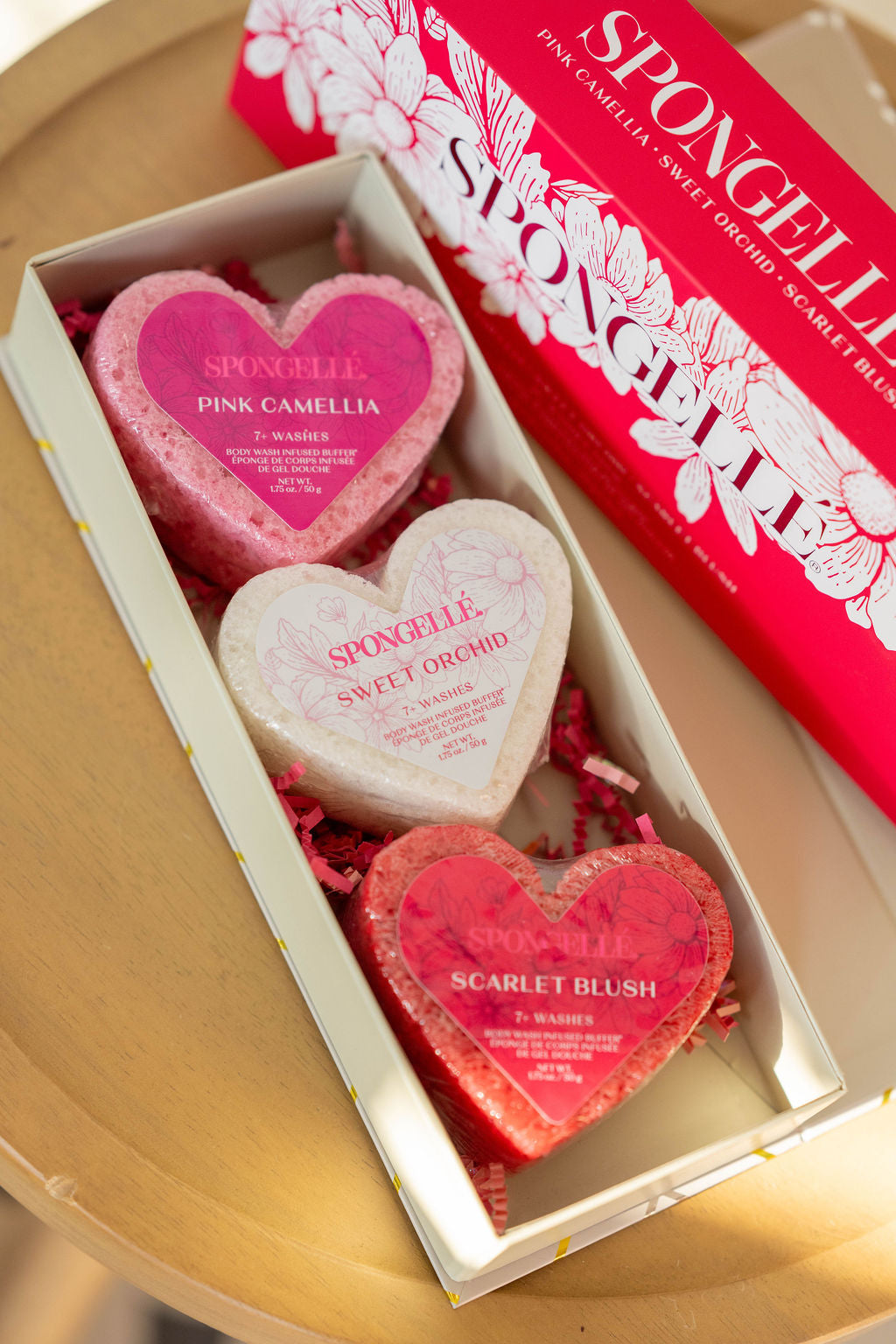 These heart-shaped body wash infused buffers are designed to add a touch of love to your daily cleansing routine. Infused with soft floral fragrances, these buffers transform your shower into a heartwarming experience. This set includes three travel-size heart buffers in Scarlet Blush, Pink Camellia, and Sweet Orchid. Good for 7+ washes each.