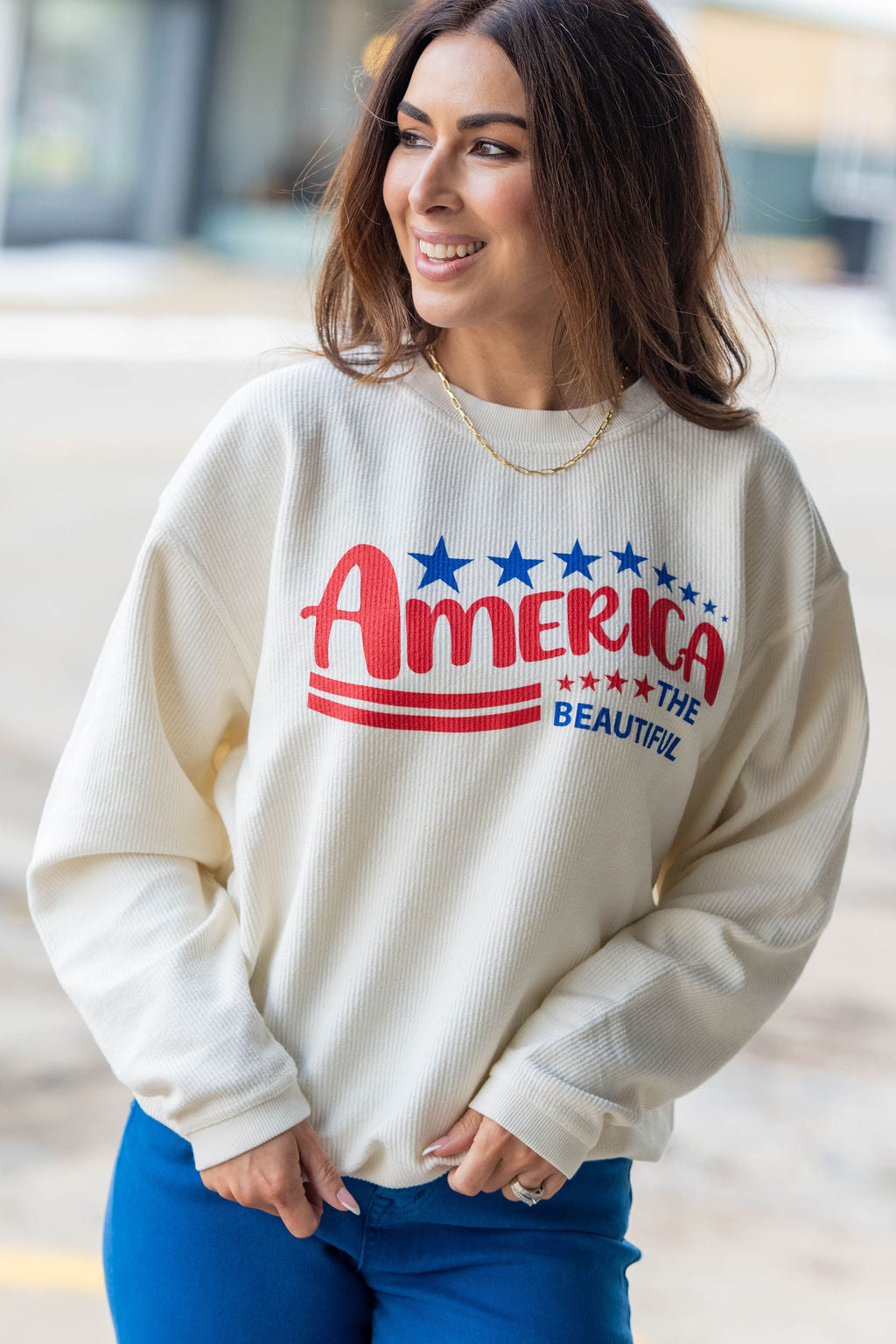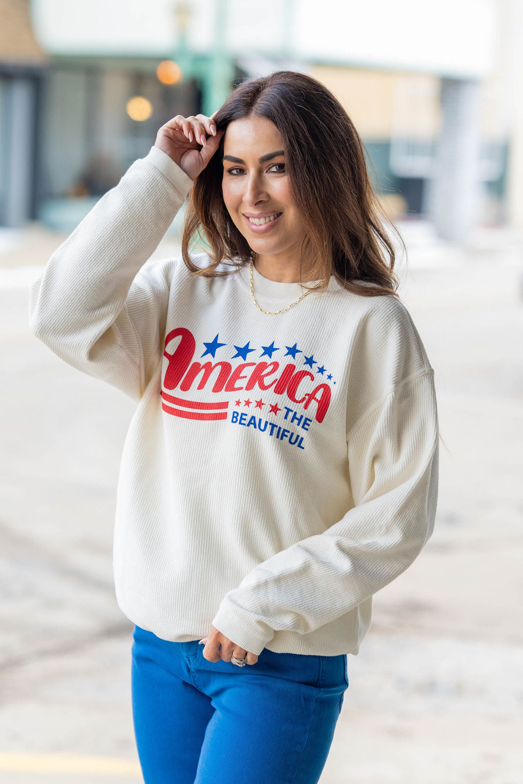 Crewnecks are a staple for every girls wardrobe, so stock up while you can! Cute and comfortable, these graphic crewnecks look great with shorts and flipflops or jeans and boots! This crewneck is elevated with a ribbed texture to really set it apart from the rest!