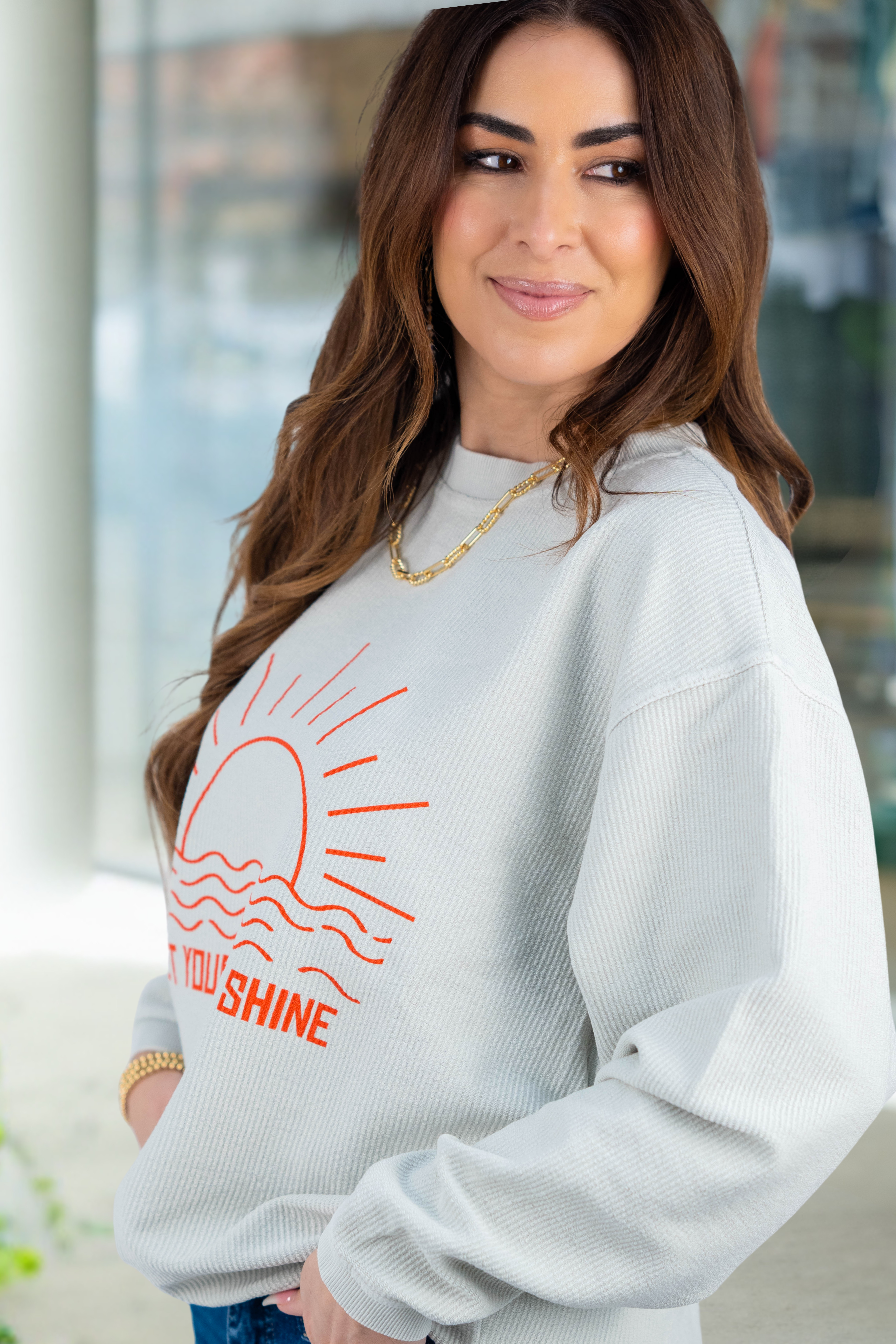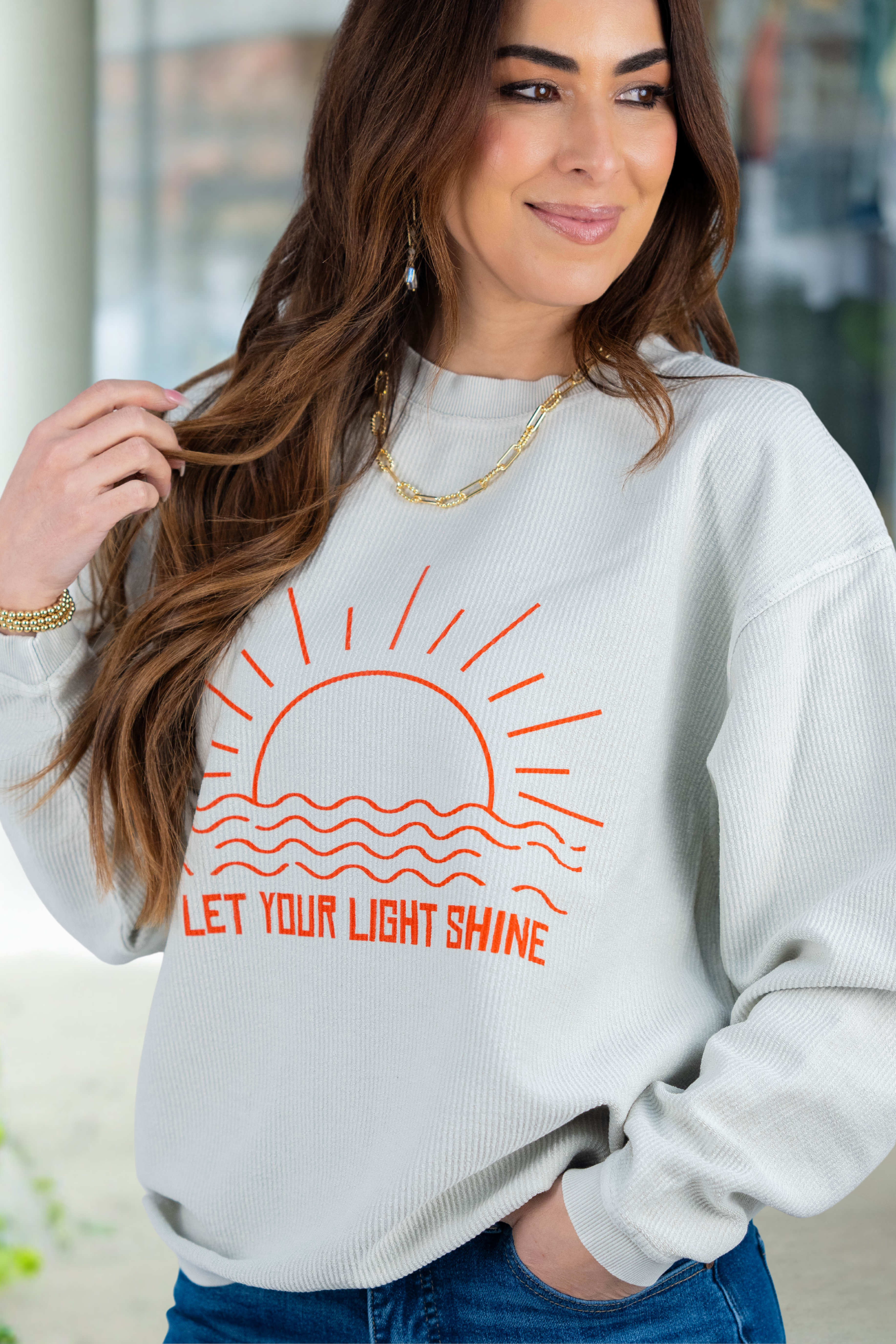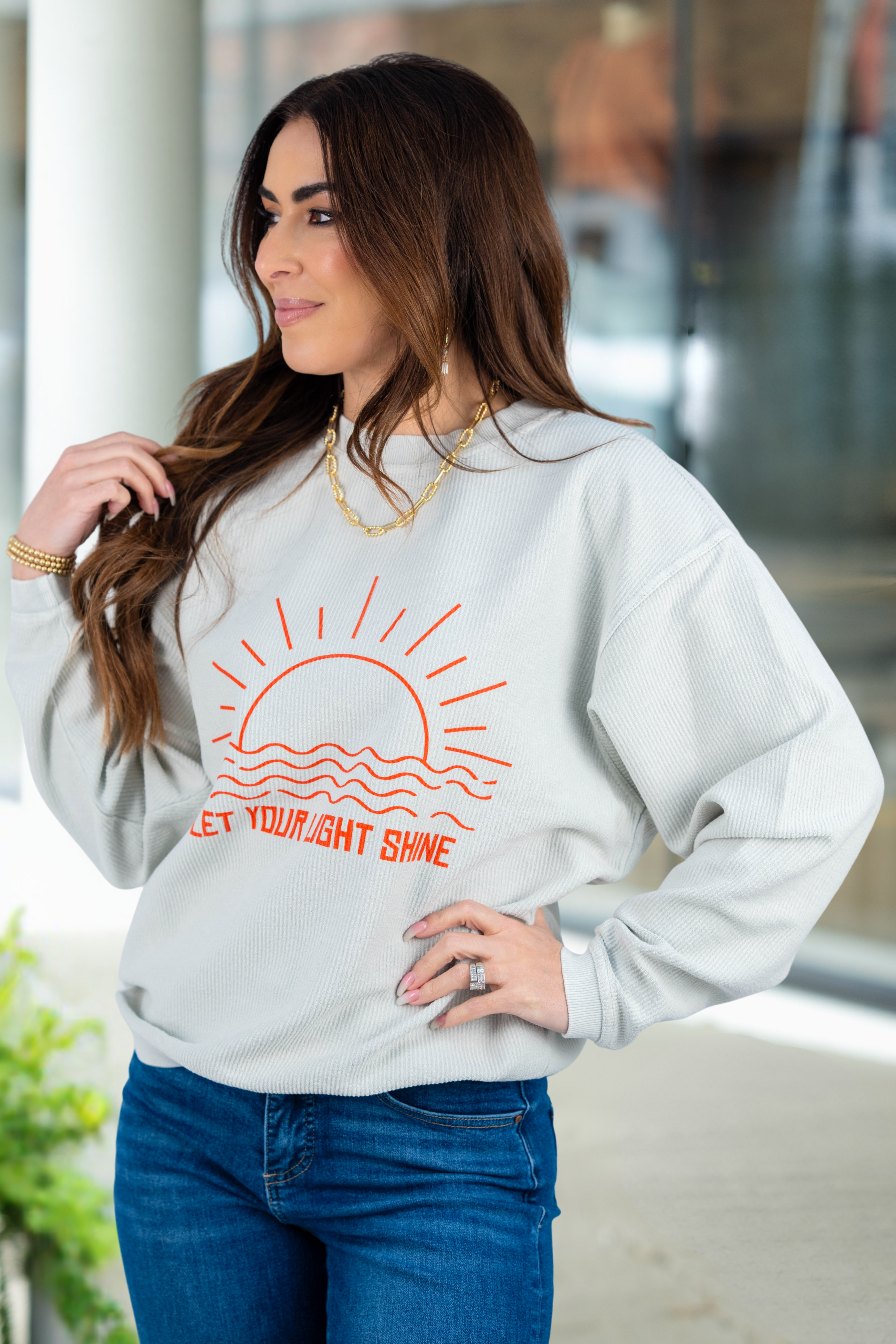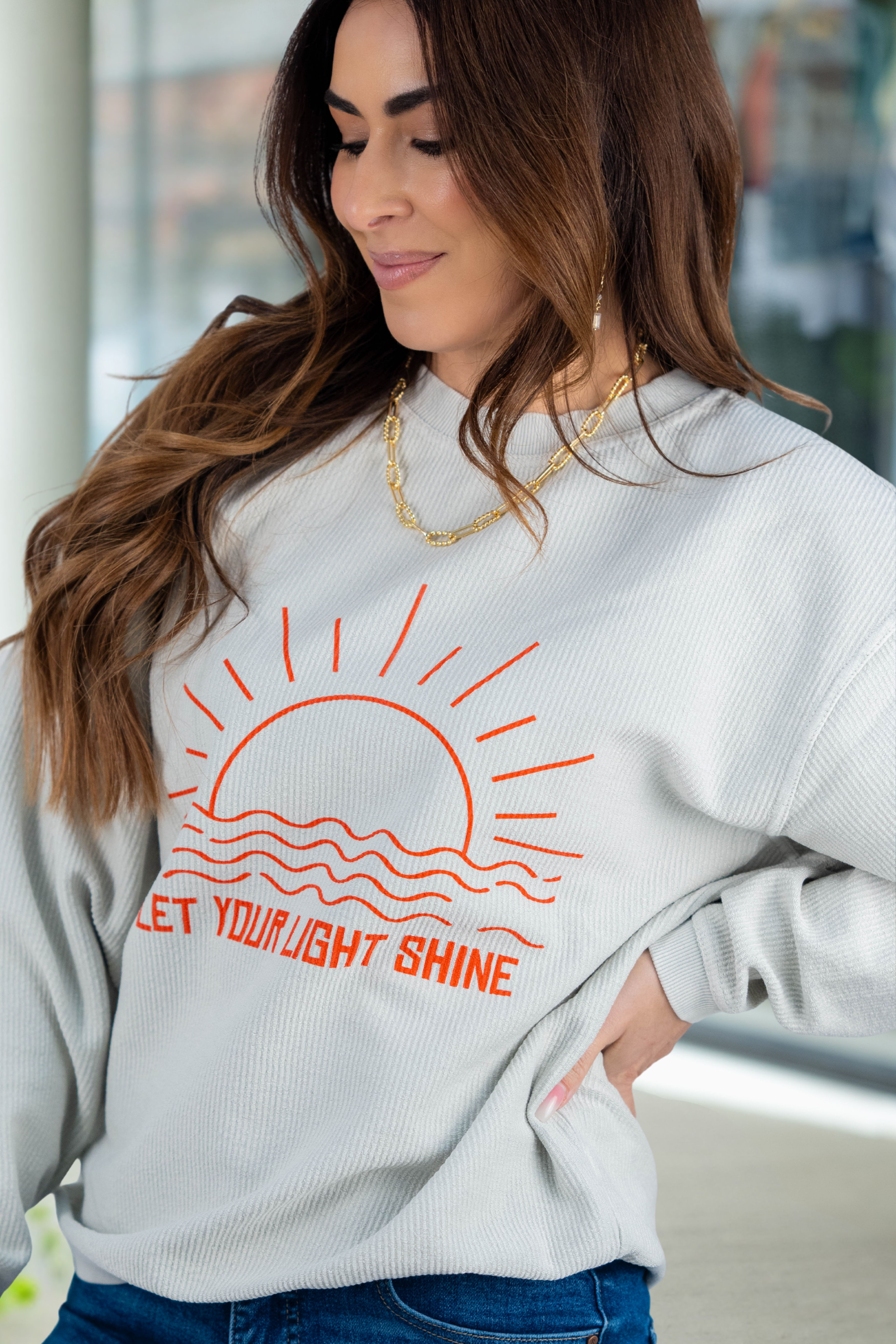 Let Your Light Shine Ribbed Crewneck