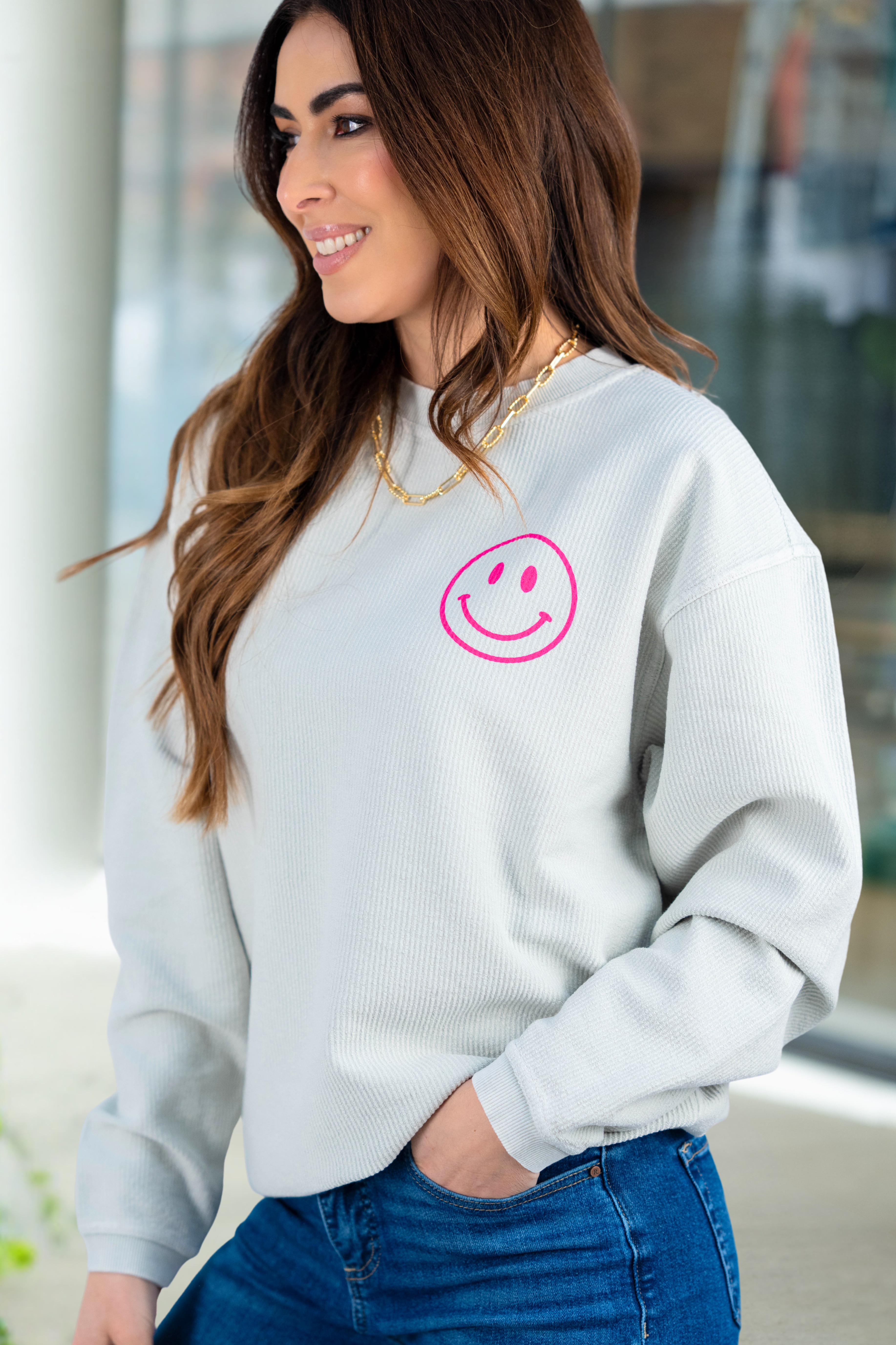 Our graphic crewnecks are already a fan favorite but with the elevated ribbed texture, this is a must-have! Throw on with shorts for a cute transitional look or with leggings, joggers, or denim in the cooler months!