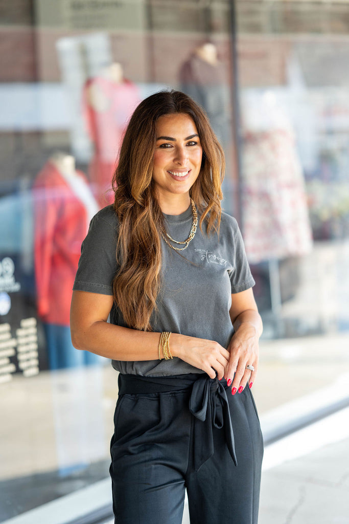 Endless ways to style this tee for whatever the day throws at you! Made from super soft and lightweight material, it can be worn with shorts during the summer or even leggings and a denim jacket for fall! We just know you’ll love it!