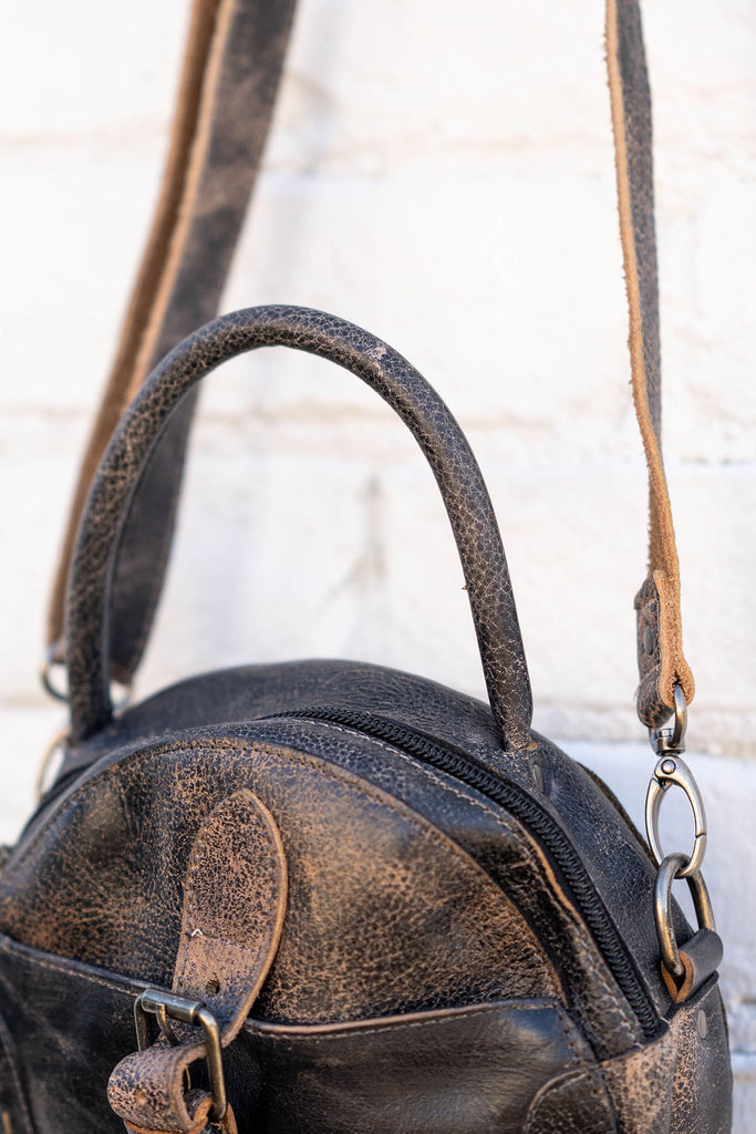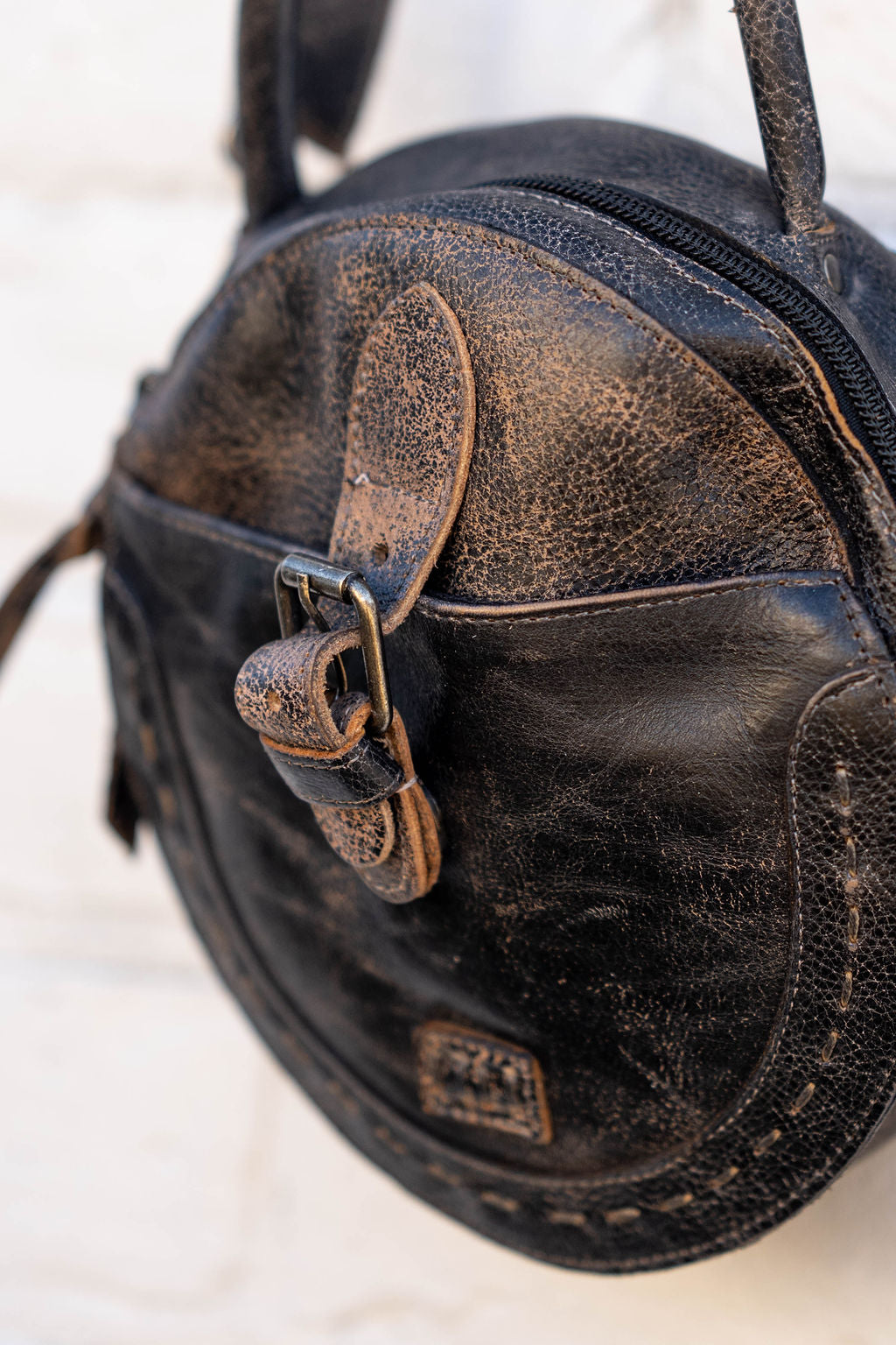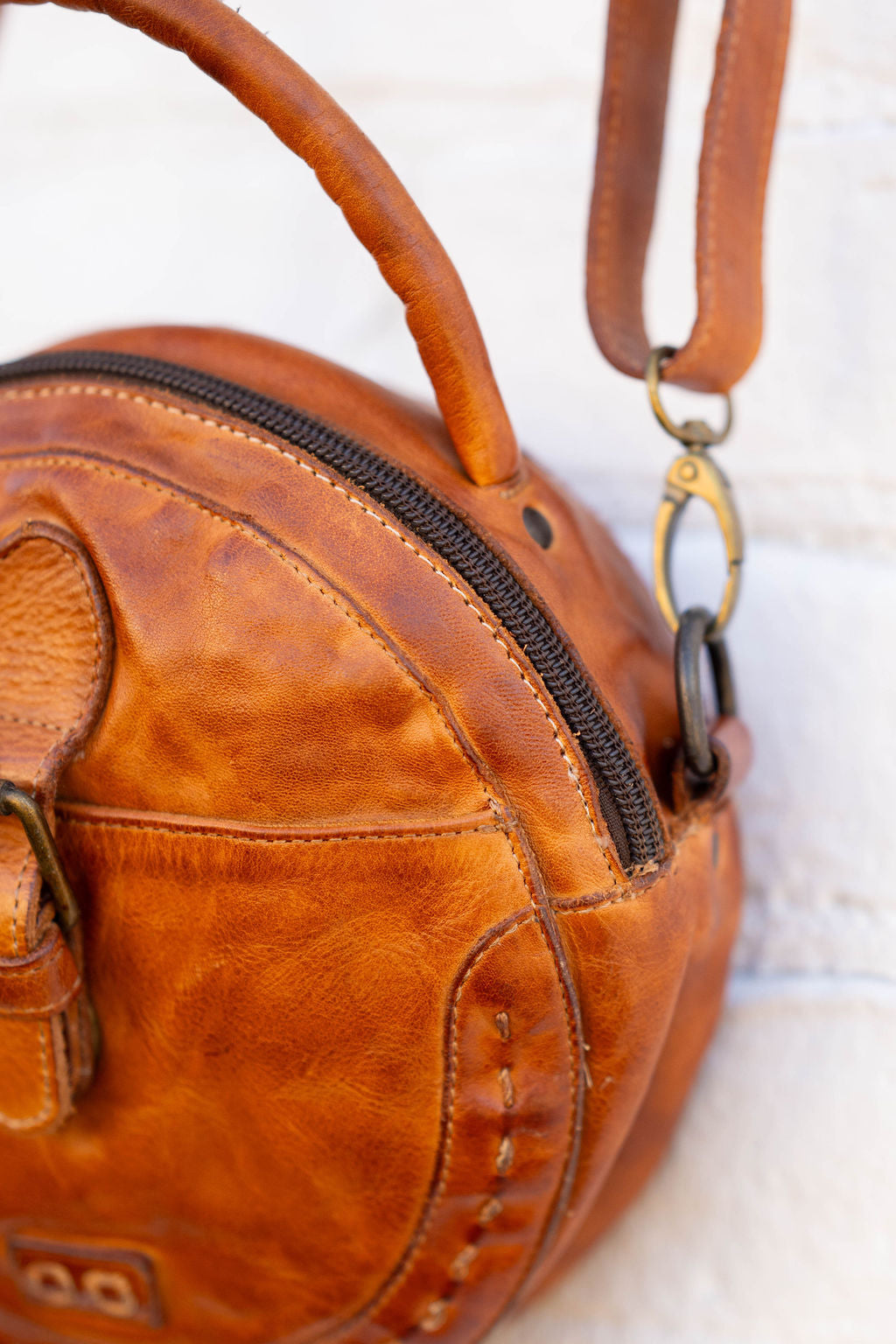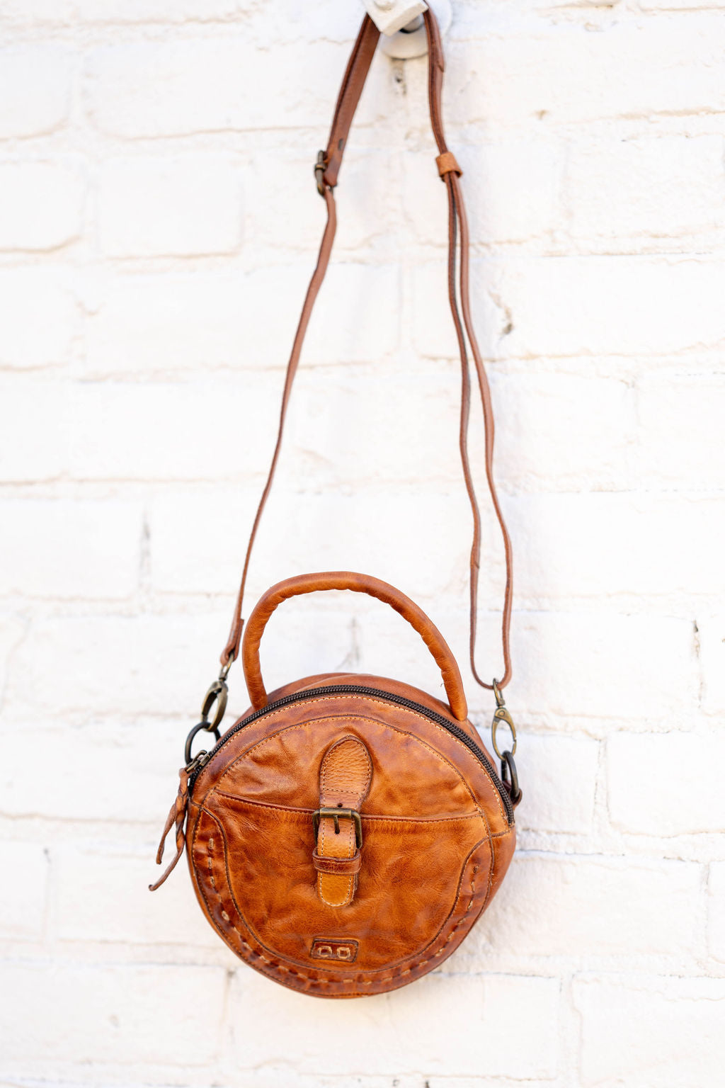 Arenfield is a unique round compact crossbody that has a small front exterior pocket with a magnet close, and a small slip one on the back that make it not just cute, but functional. It has a padded handle, zip-top close and a removable, and adjustable crossbody strap to switch up your look. Circle all things complete with Arenfield.