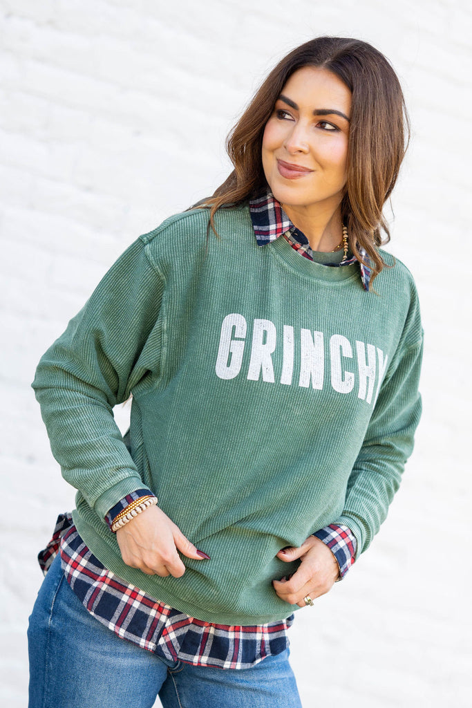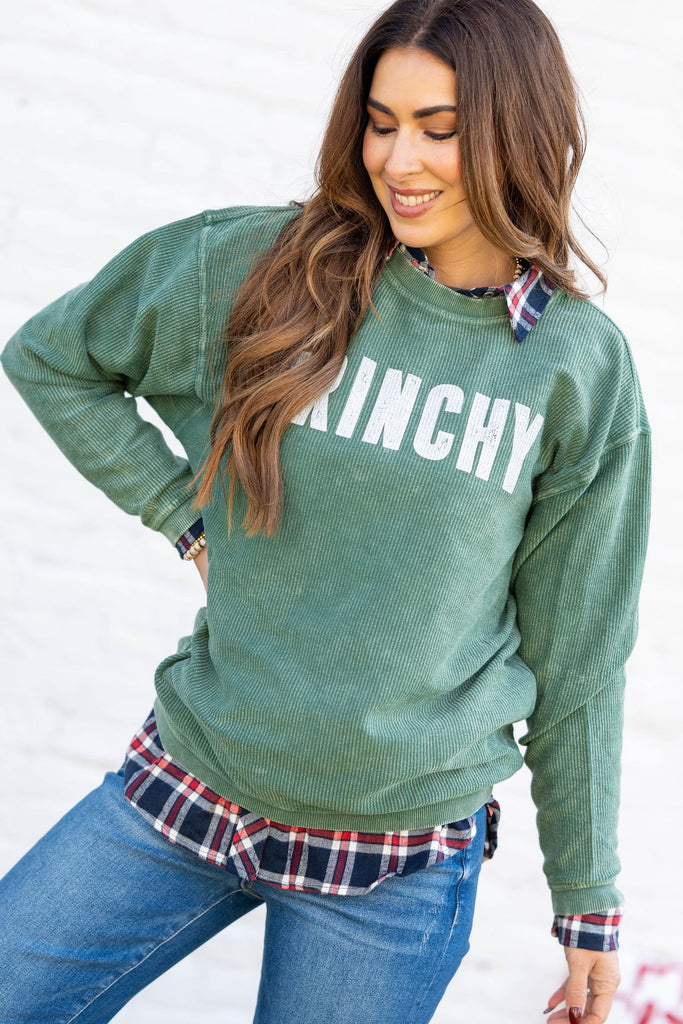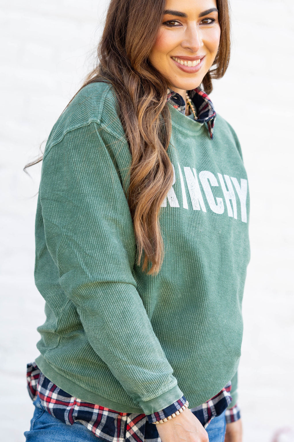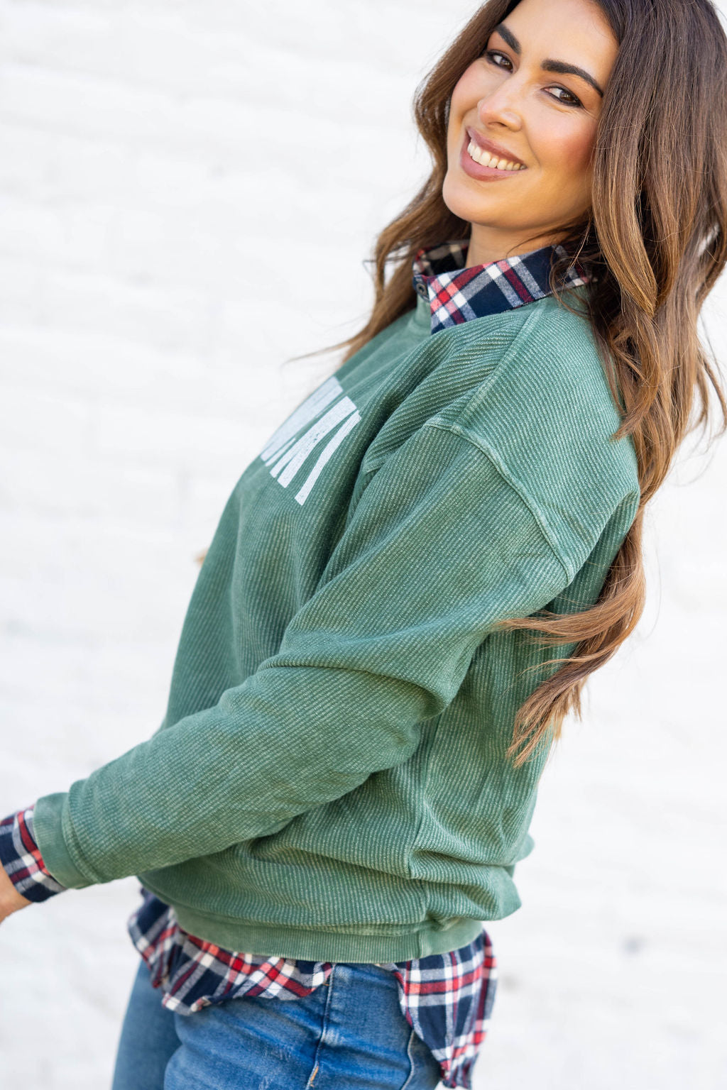 Just in time for the holidays! Our graphic crewnecks are already a fan favorite but with the elevated ribbed texture, this is a must-have! Throw on with shorts for a cute transitional look or with leggings, joggers, or denim in the cooler months!