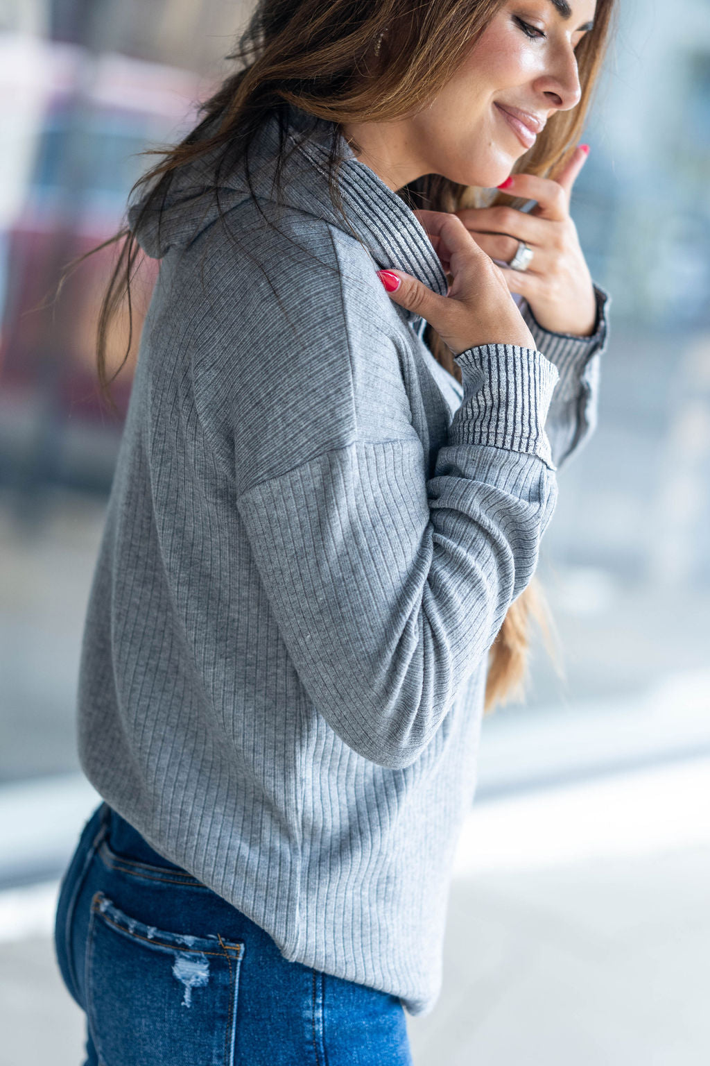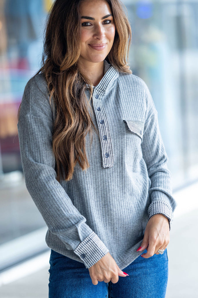 Sweatshirts are a busy girls staple! This sweatshirt features a soft and lightweight ribbed material with contrasting ribbed trim, button accents, and a hood! Pair with shorts to transition you from the warmer months or with your favorite denim, joggers, leggings, or a bold-colored pair of our Betsey's Jeggings! Don't forget your accessories to elevate the look!