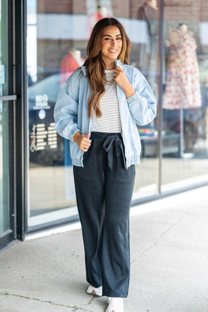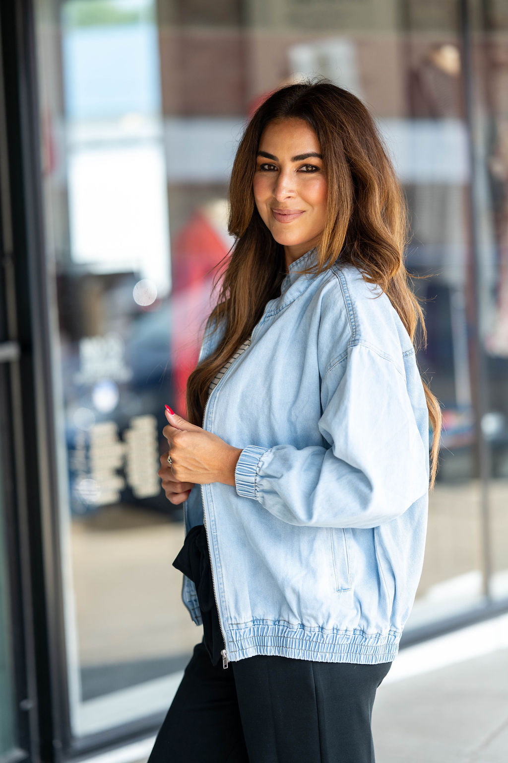 Denim jackets are such a classic and essential piece for every girls wardrobe! This denim jacket features a bomber fit to set it apart from the rest! Throw it on over a blouse, a dress, a basic or graphic tee, anything! With its simplicity, this piece is easy to dress up or down for everyday wear!