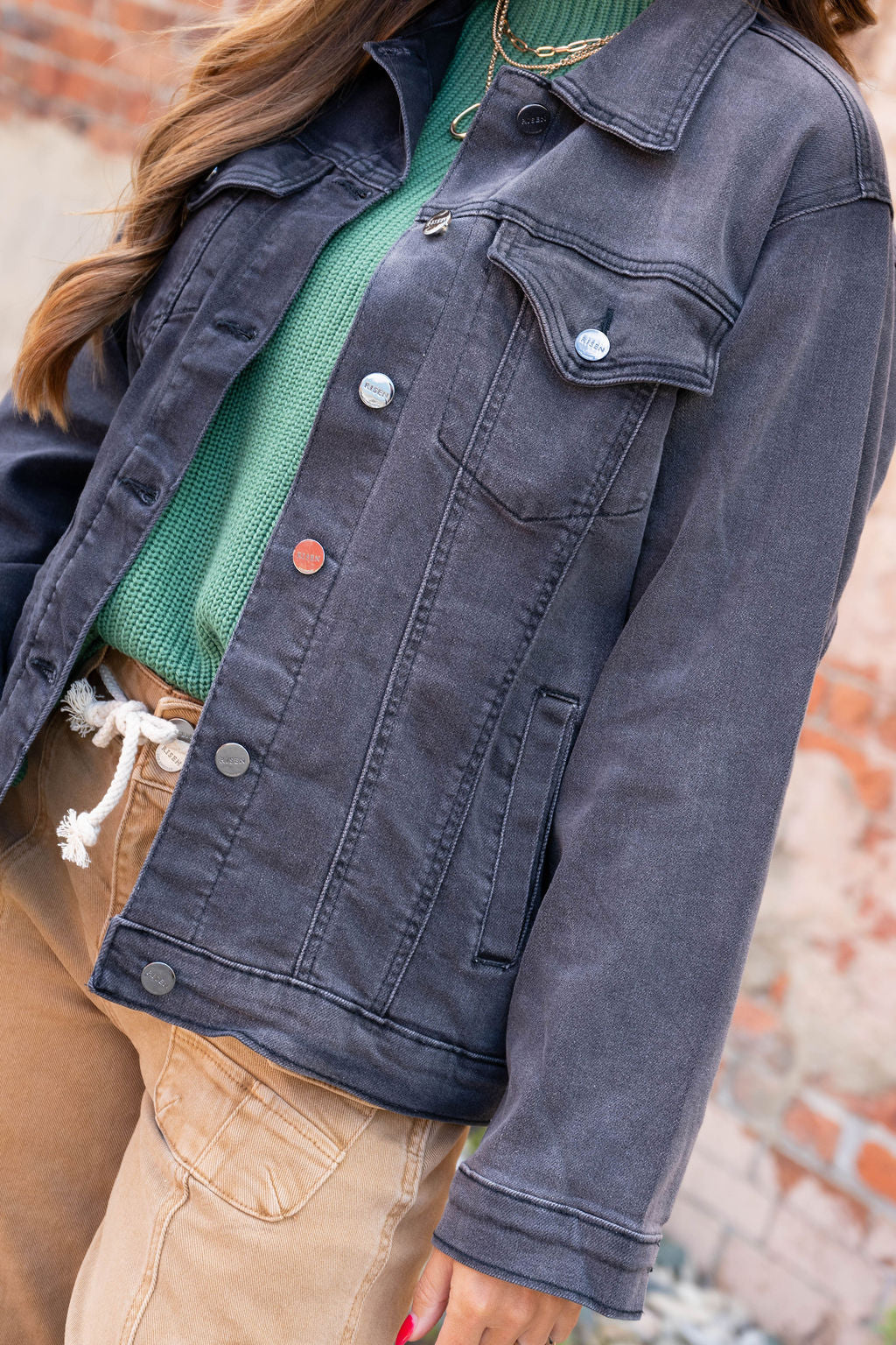 Denim jackets are so classic and timeless! This features a subtle Washed toned look to set it apart from the rest! Pair with a dress, a blouse, a graphic or basic tee, or a sweater for a quick and effortless look!