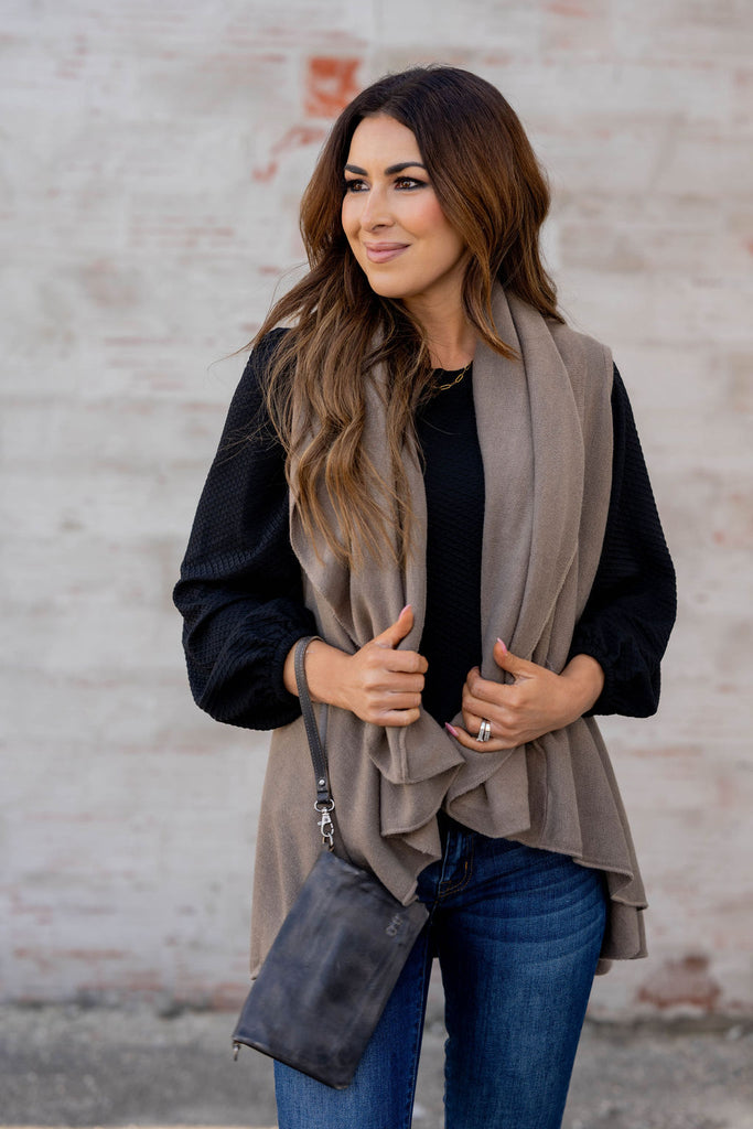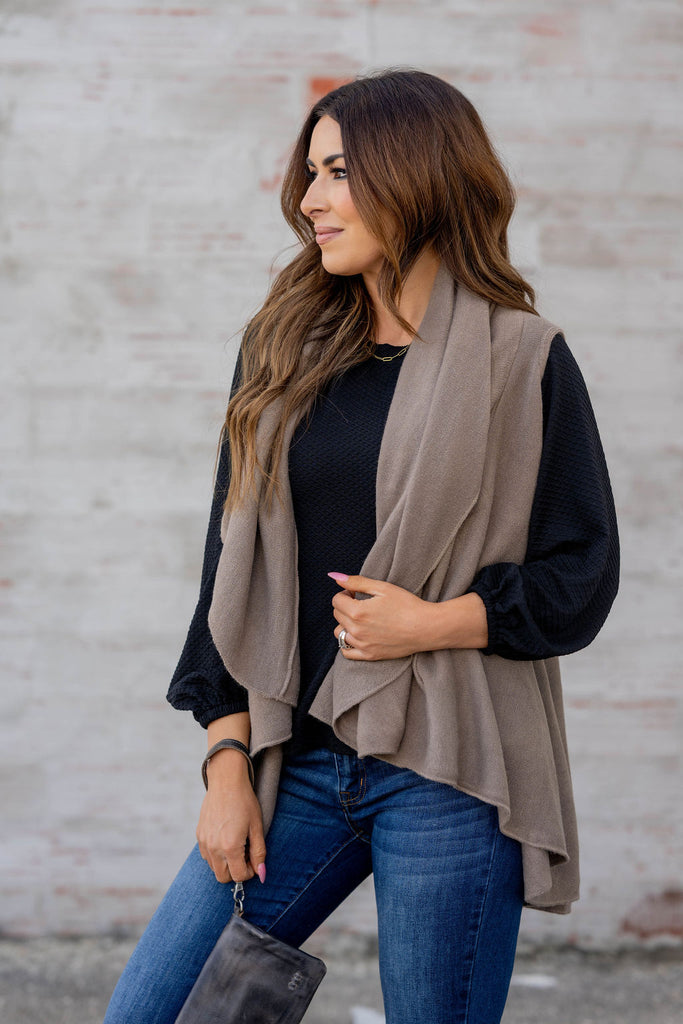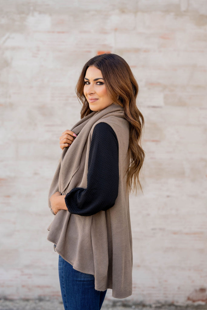 This vest is so easy to wear and versatile. It is the perfect length to be worn with a blouse and jeans, a tunic and leggings, or even a dress! The neutral color makes it easy for anyone to enjoy and quickly takes an outfit from basic to fabulous with just one piece!