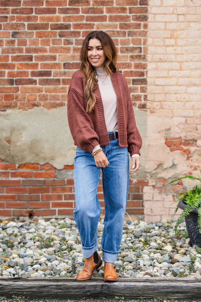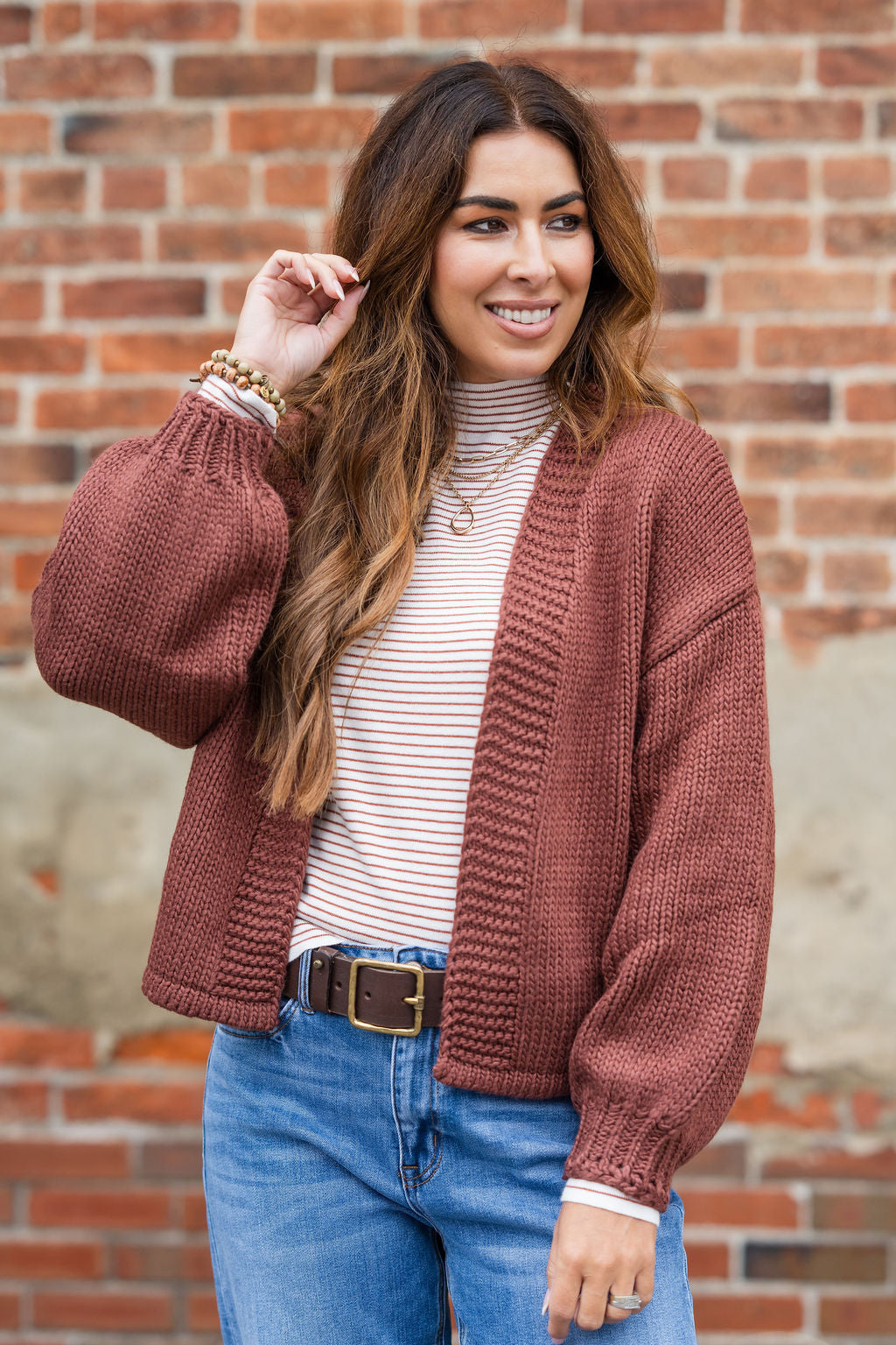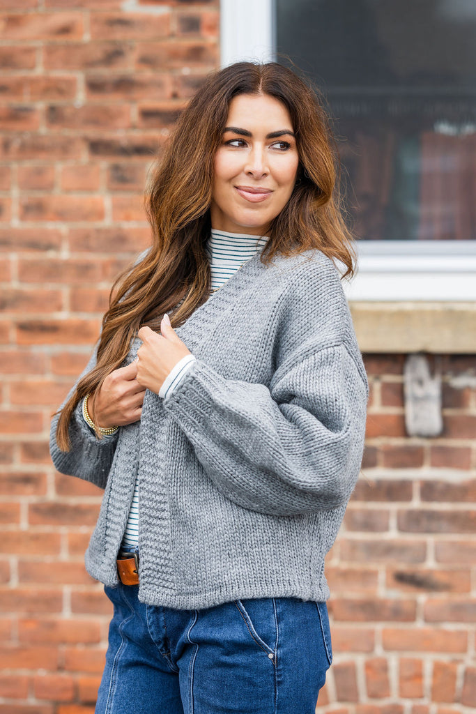 Cardigans are an essential part of every girls' wardrobe! Pair with a dress, a blouse, a basic or graphic tee, anything! This knit cardigan features a thick ribbed trim and fun balloon sleeves to set it apart from the rest! The simplicity of this cardigan allows you to dress it up or down for everyday wear!