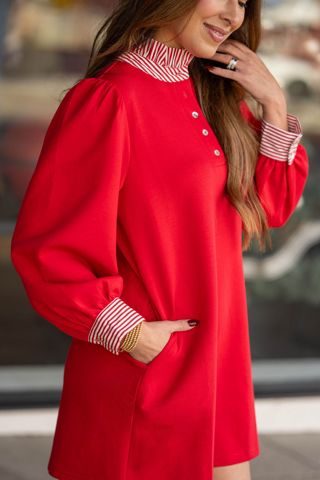 Puff sleeves with striped cuff detail