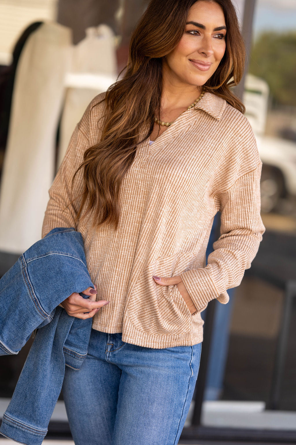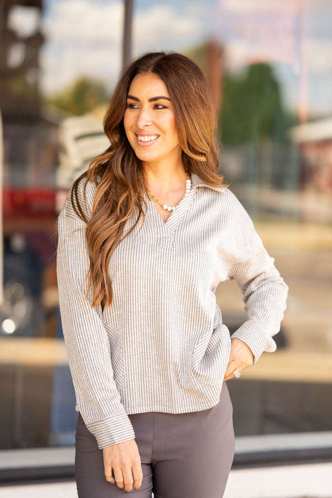 A cozy classic made for laid-back days and effortless polish. This soft ribbed pullover brings that perfect blend of comfort and put-together style you’ll reach for all season long.