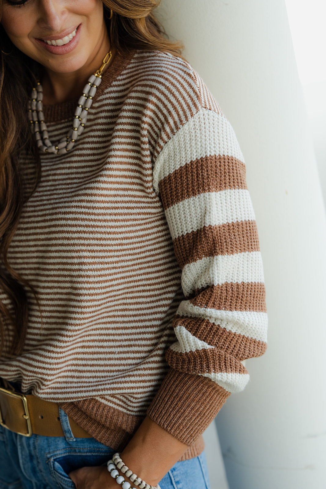 Solid Trim Mixed Stripes Sweater