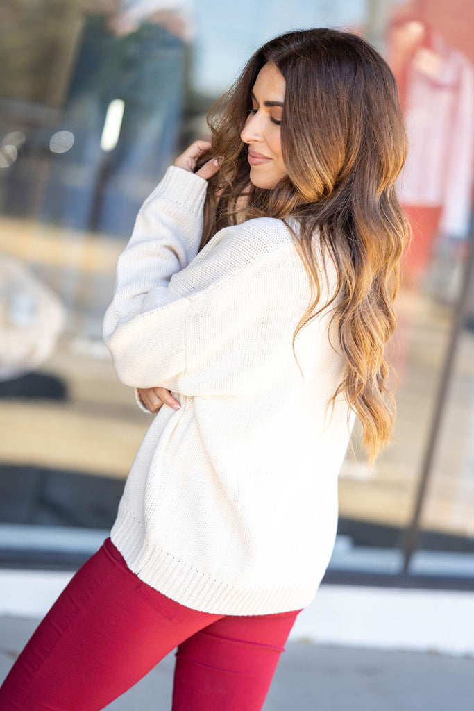 Sweet, simple, and ready for the season — this cozy knit adds the perfect festive touch. The bold bow detail gives a playful twist to a classic silhouette, making it ideal for holiday gatherings or cozy nights in.