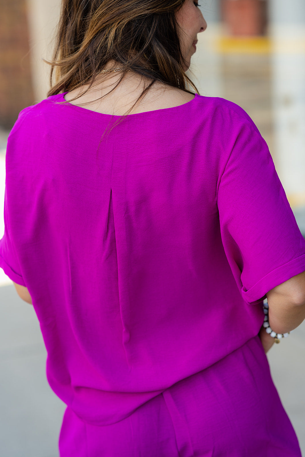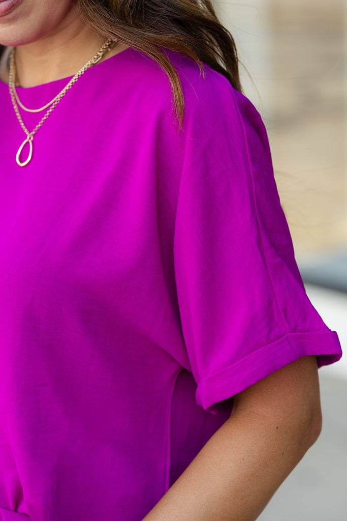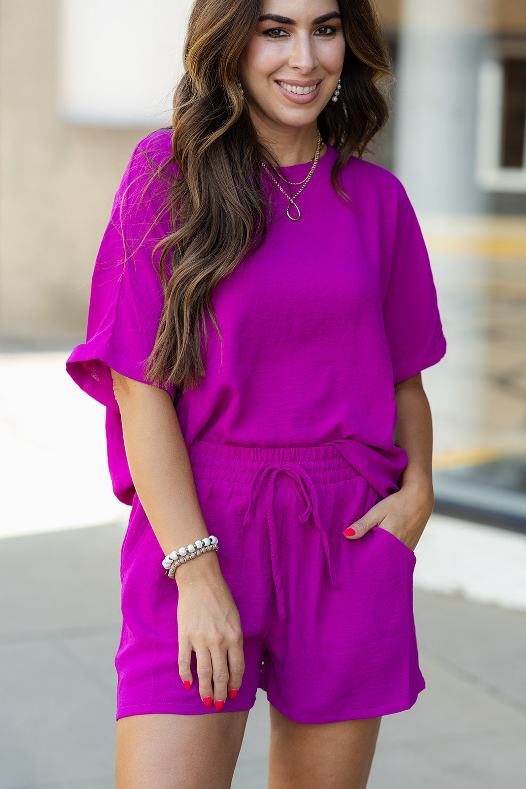 Comfort meets style in this tee! The lightweight and breathable material can be carried through all seasons and the cuffed sleeves give a fun twist to any look! Chilly? Layer with a vest or shacket! We also suggest pairing this with our Lightweight Relaxed Drawstring Shorts for a chic and complete look!