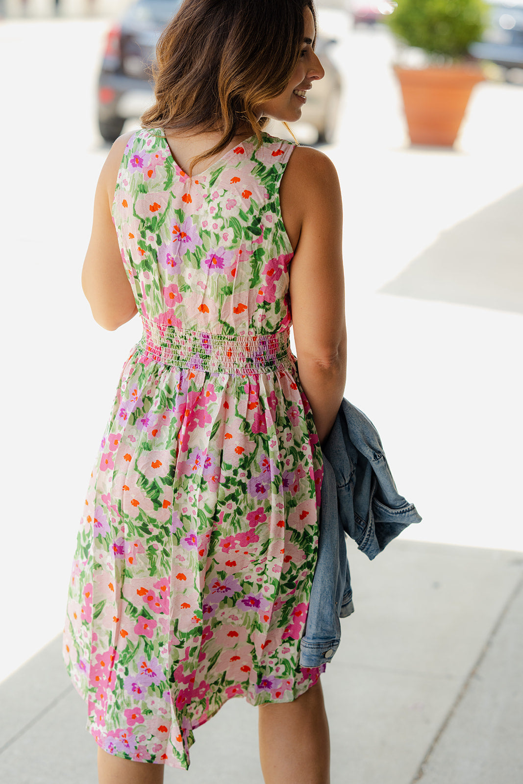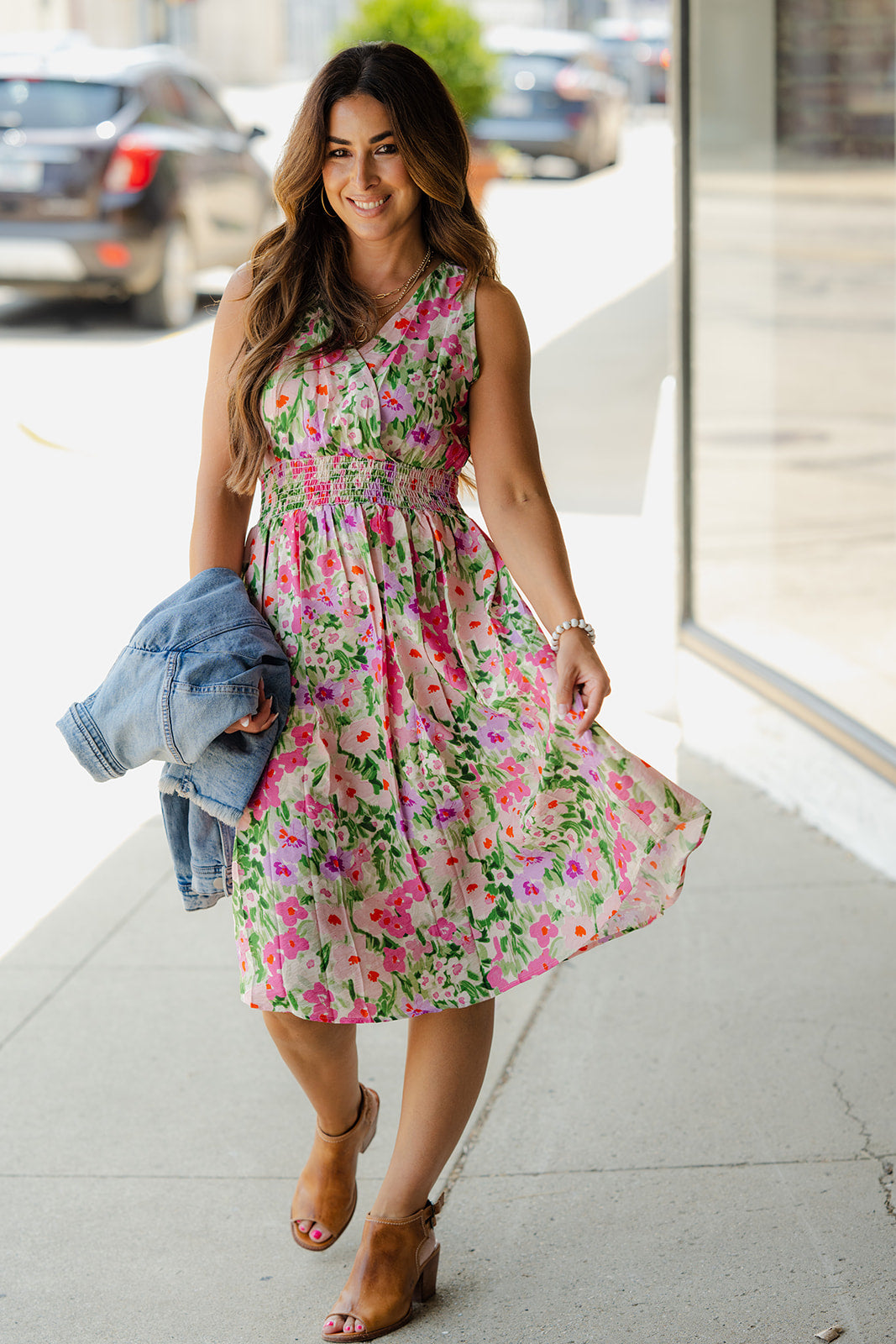 Everything about this midi is absolutely stunning! The wrap top, cinched waist, and flowy bottom that gives a super slimming effect, and the beautiful colors and print set this apart from the rest! Wear alone with a fun pair of earrings or a statement necklace or pair with a cardigan or denim jacket for those breezy days!