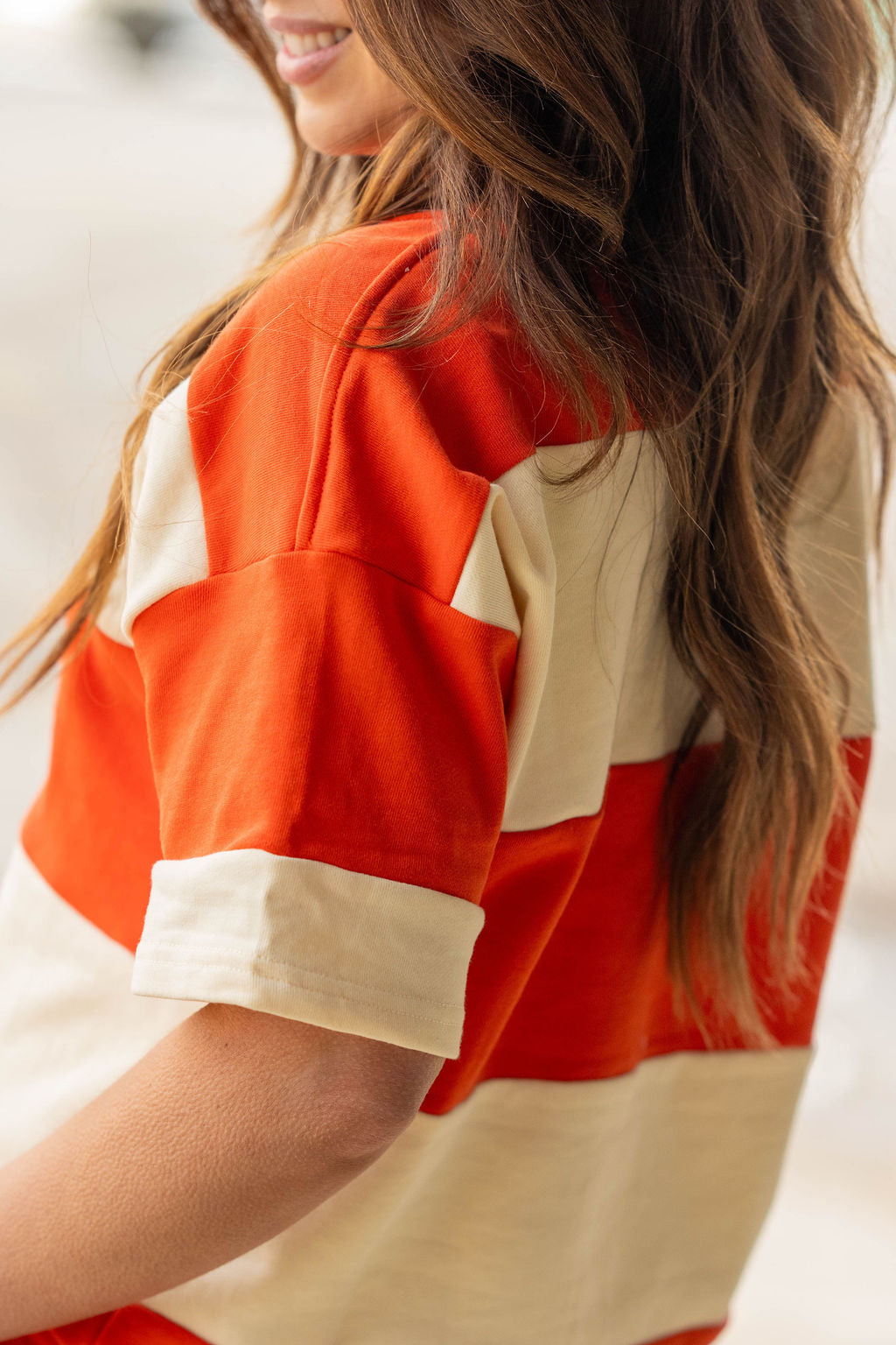 A bold and playful colorblock top designed for effortless, everyday style. The soft knit fabric, relaxed fit, and sporty half-zip neckline make it an easy throw-on piece that still feels elevated.