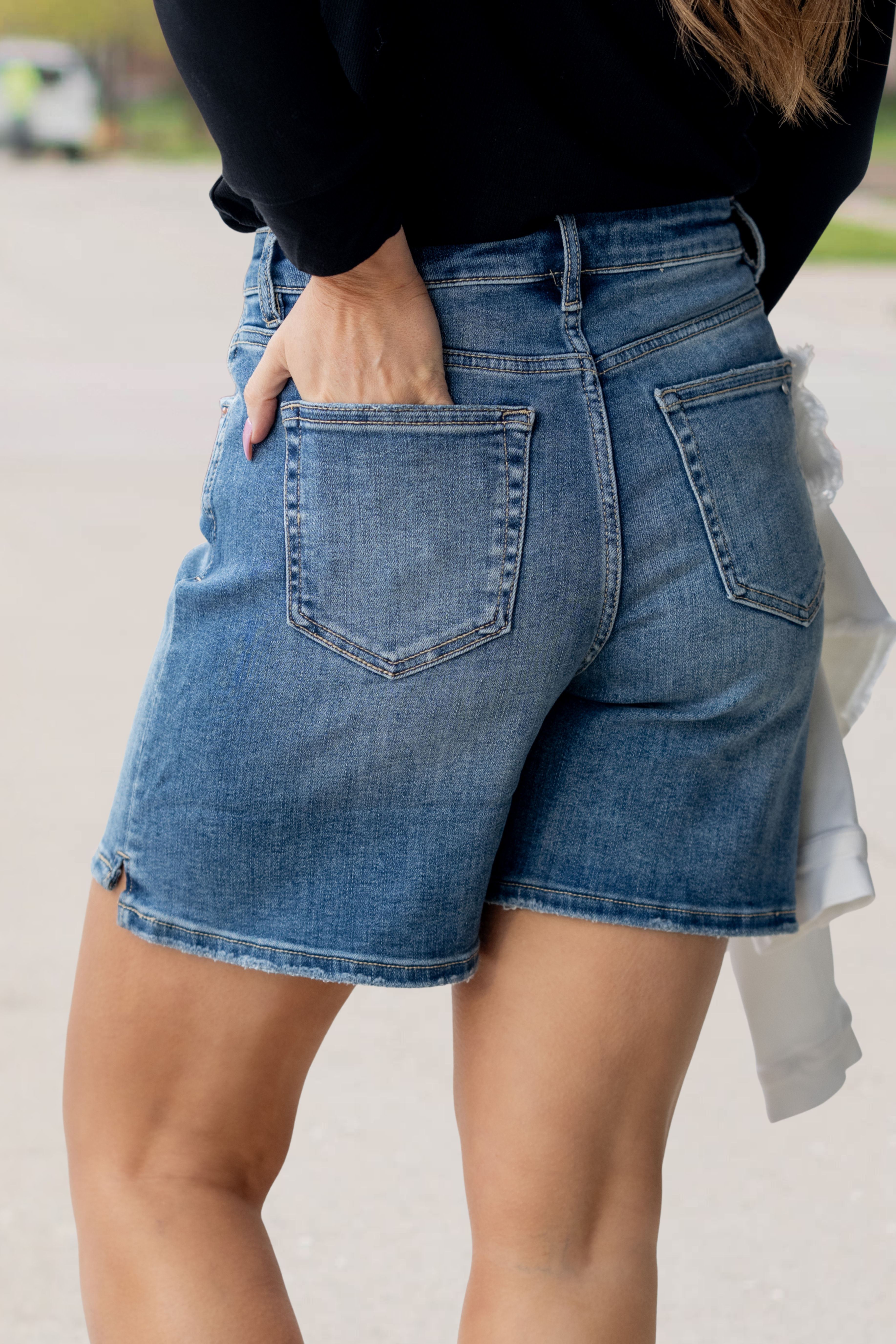 Your everyday denim shorts just got an upgrade. These classic super high-rise shorts feature a flattering, easy fit with the perfect amount of structure and comfort. The lived-in wash and subtle fading give them that broken-in feel you love, while the clean silhouette keeps them polished enough to dress up or down.