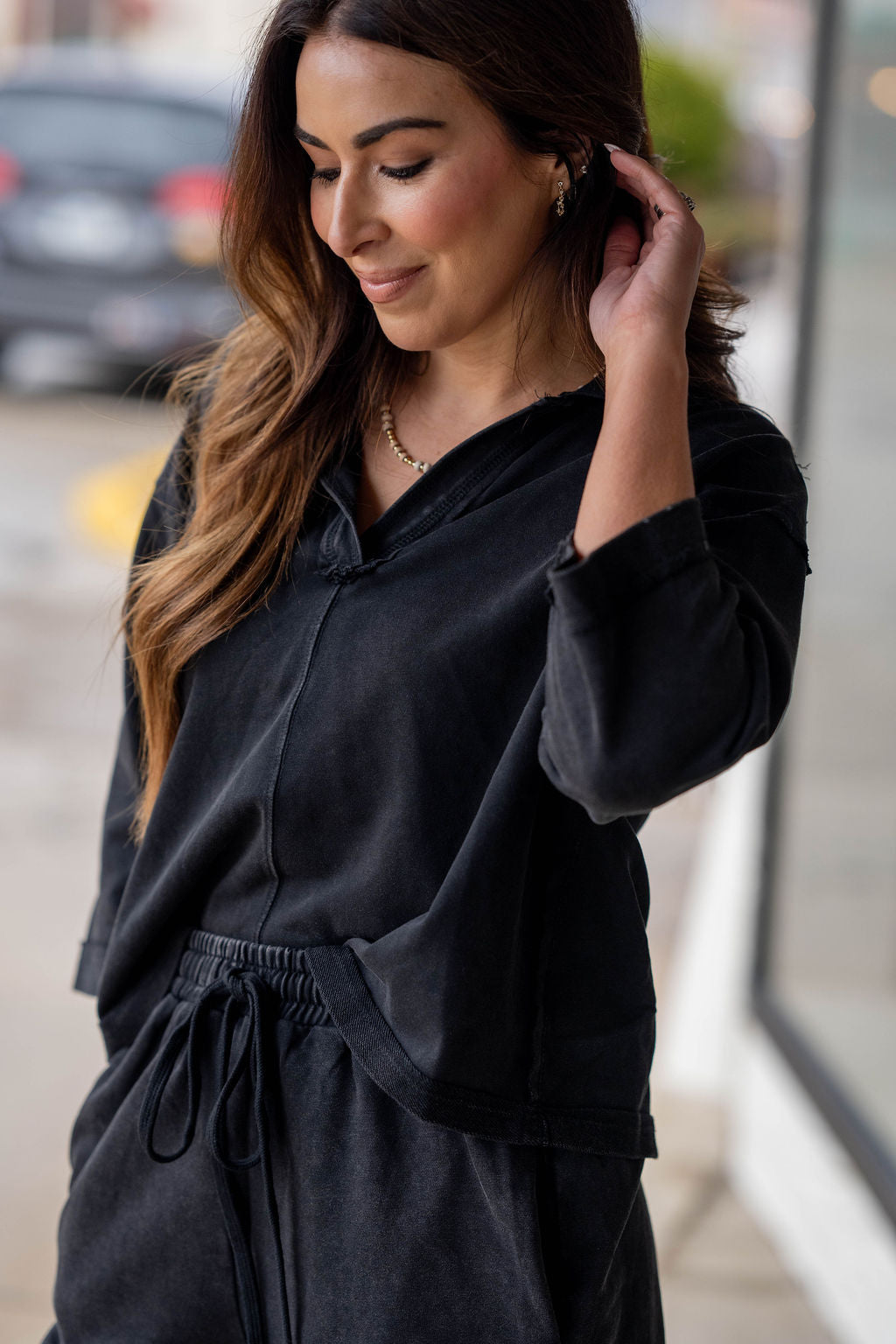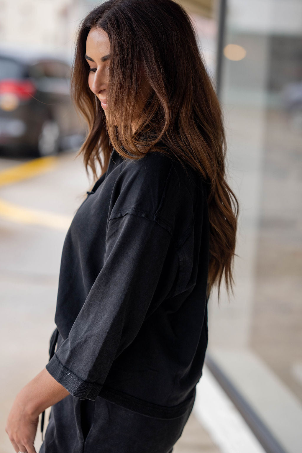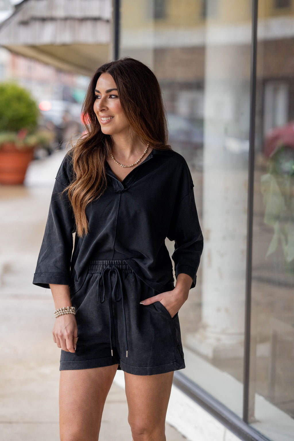 Easy, effortless, and made for everyday wear — the On the Go Set is your new go-to for comfort without sacrificing style. This matching set features a relaxed v-neck top with modern elbow-length sleeves paired with coordinating drawstring shorts for the perfect laid-back look.
