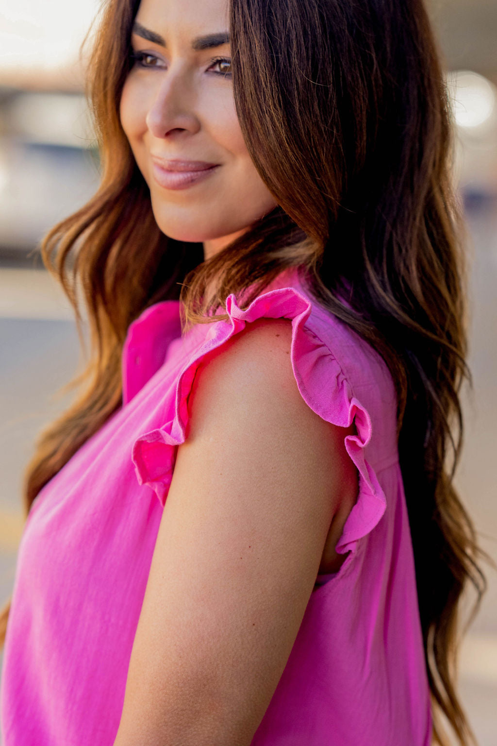 From the ruffle trim to the button accents, this tank is unlike all the rest! Pair with shorts on those hot sunny days or with your favorite denim or our Betsey's Jeggings and a cardigan or denim jacket for the cooler ones!